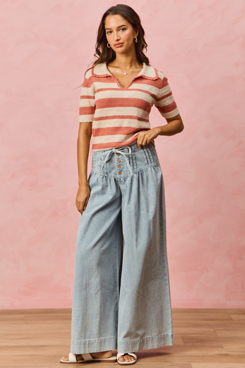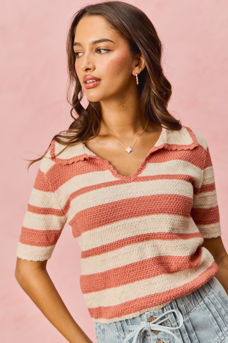 Stripe Short Sleeve Cropped Sweater