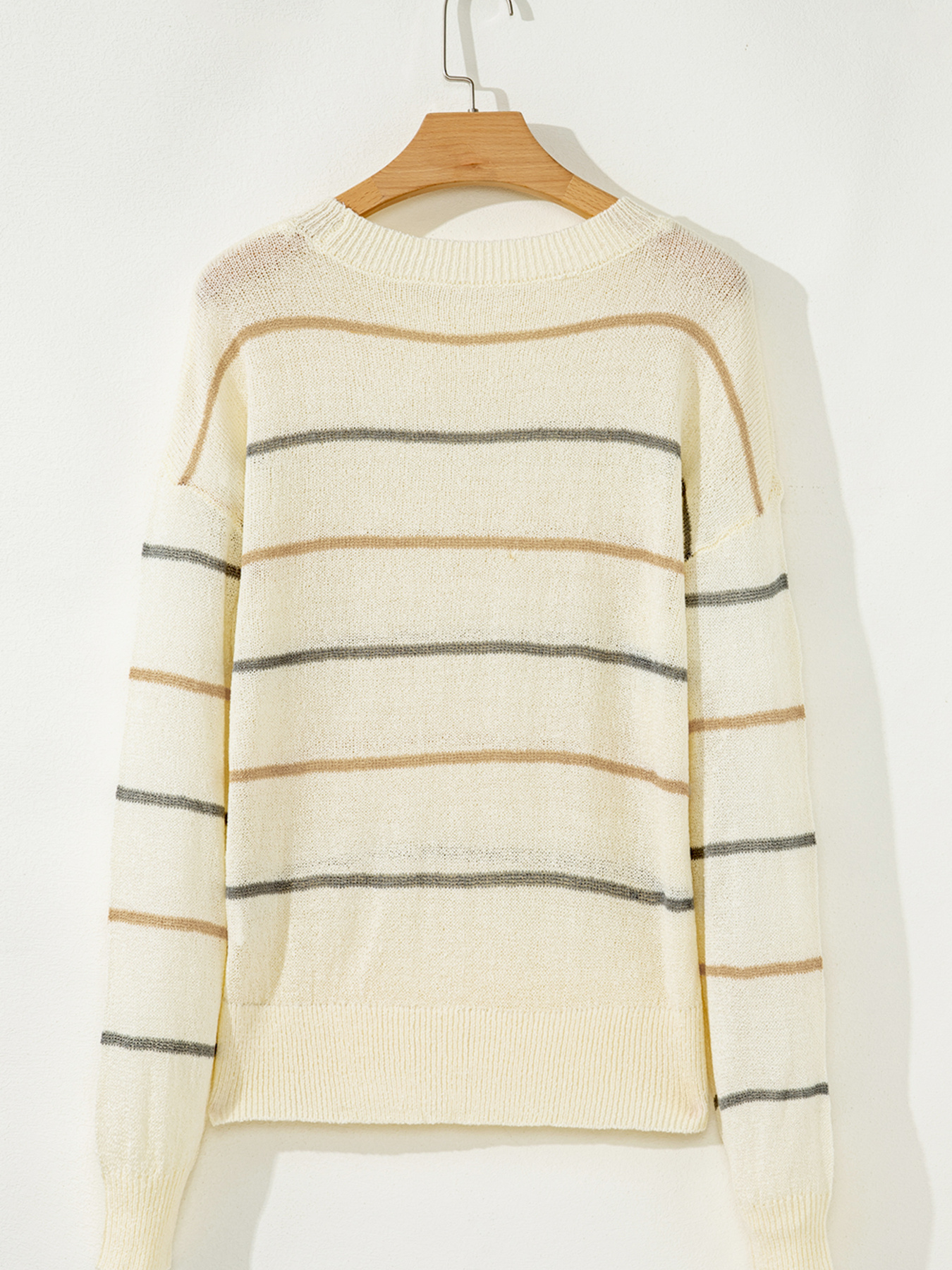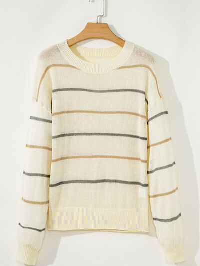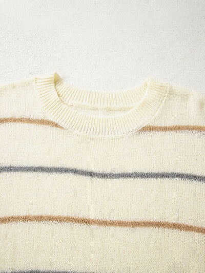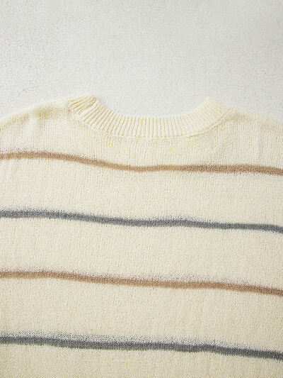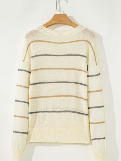 Stripe Striped Ribbed Edge Drop Shoulder Sweater