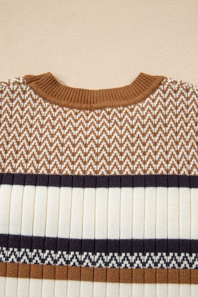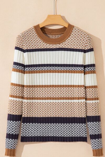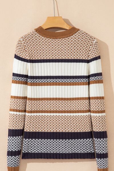 Stripe Stylish Pattern Knitted Ribbed Trim Slim Sweater