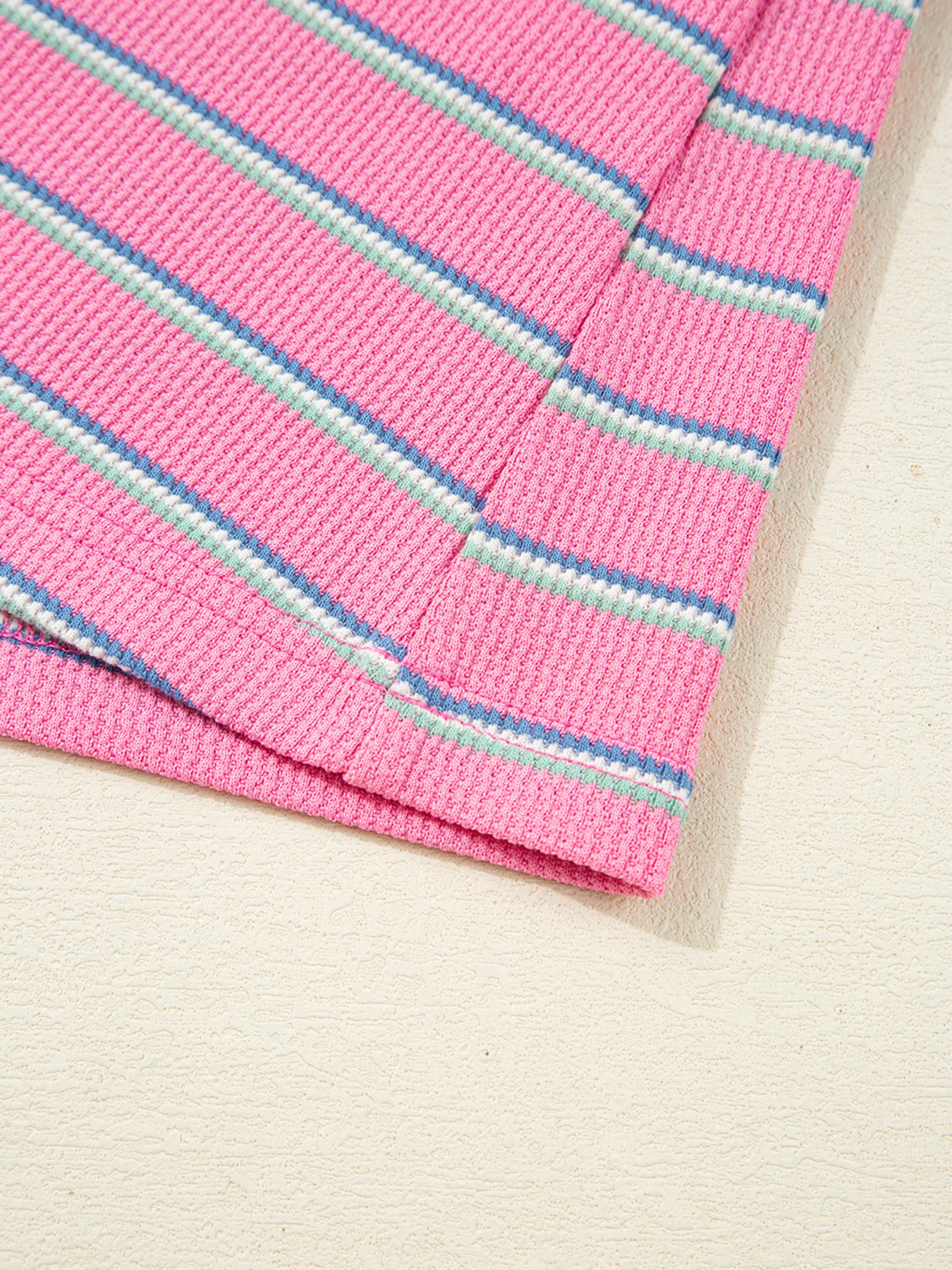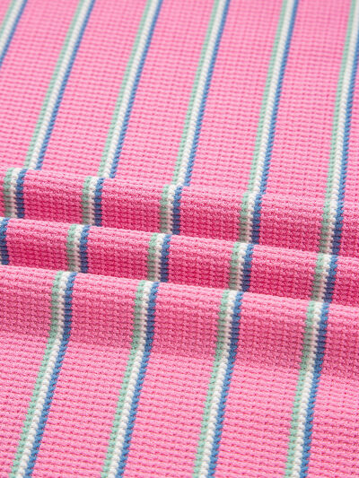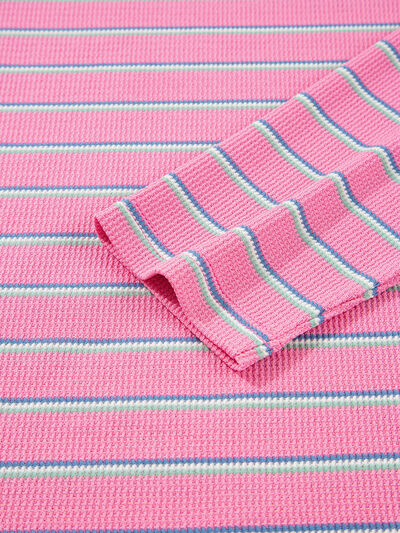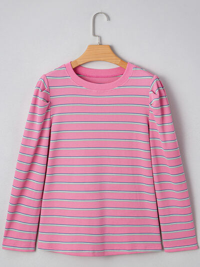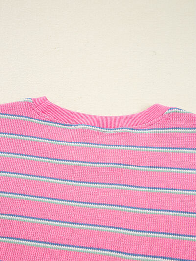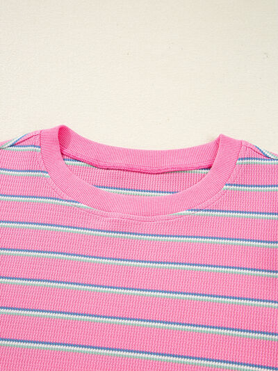 Stripe Textured Knit Round Neck Puff Sleeve Top