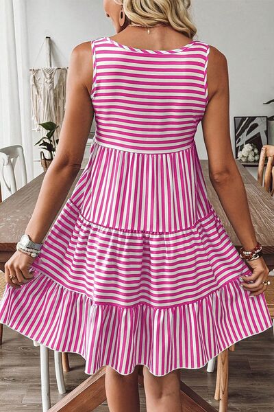 Stripe U Neck Sleeveless Loose Fit Mini Dress