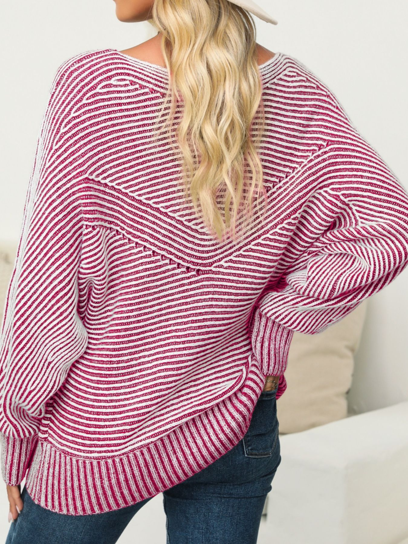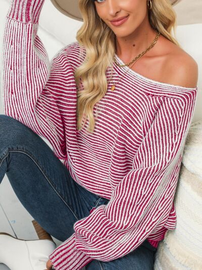 Striped Boat Neck Casual Sweater