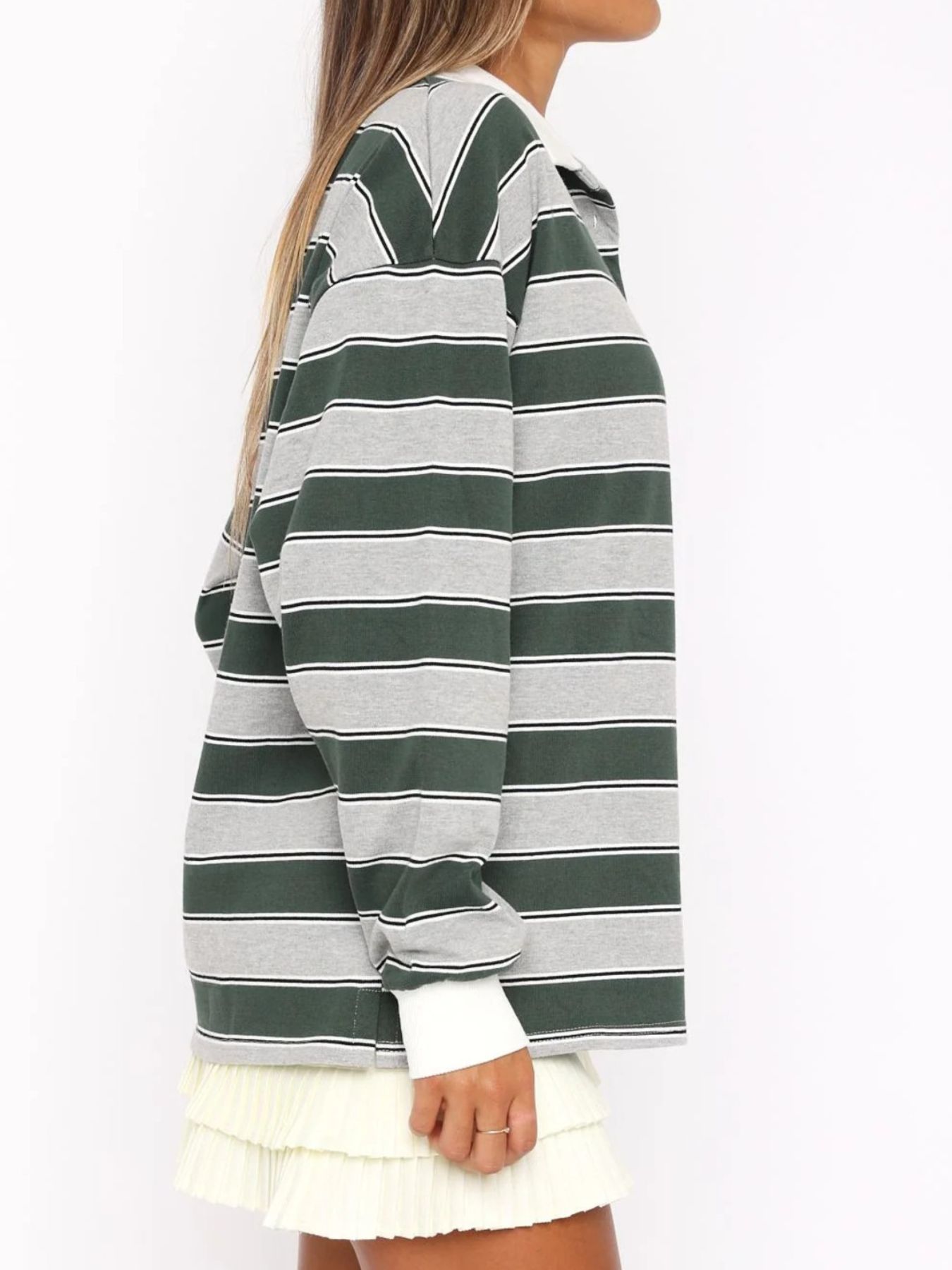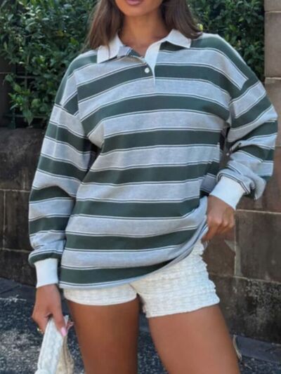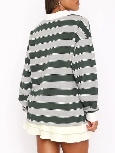 Striped Button Detail Long Sleeve Polo