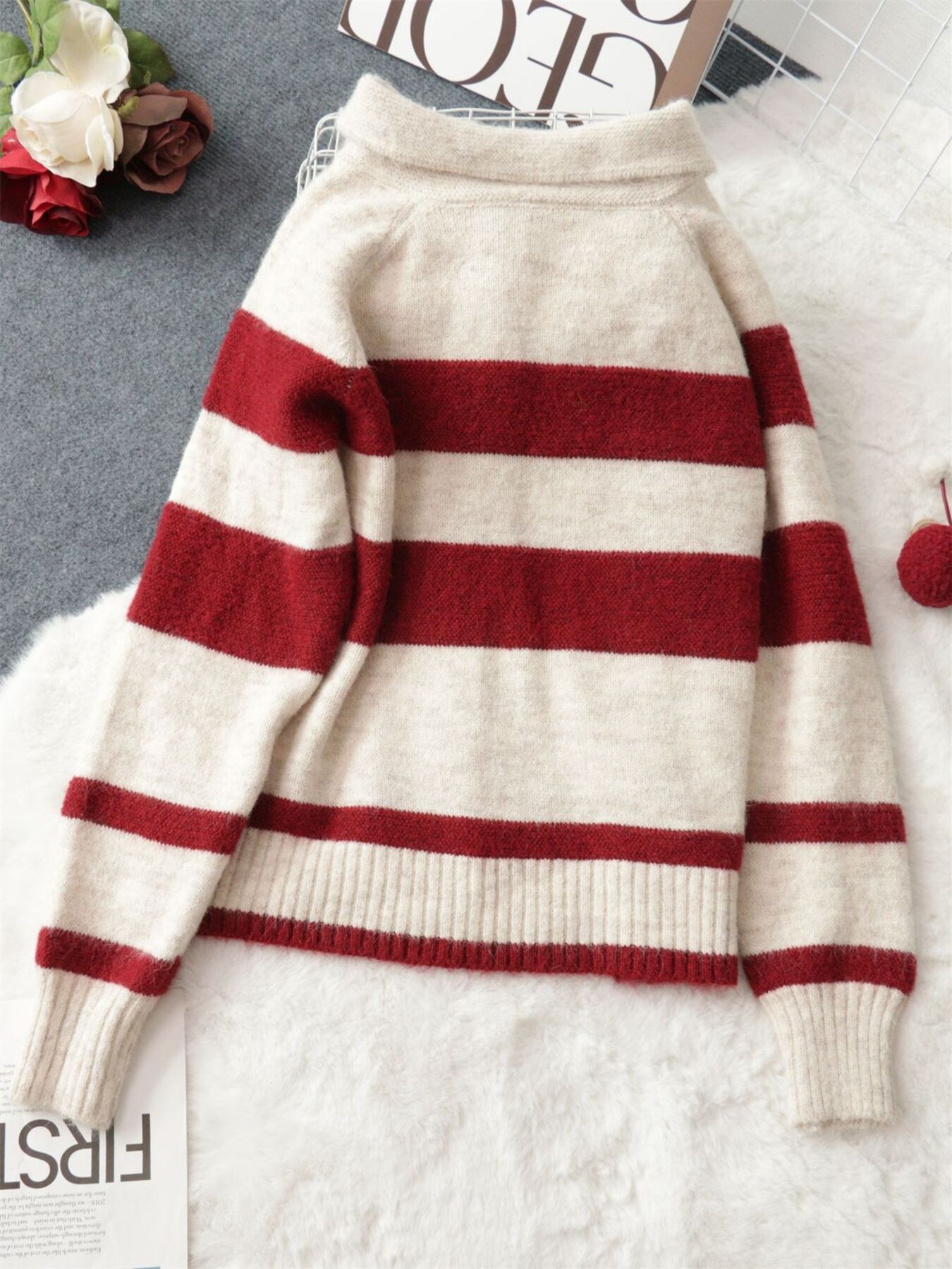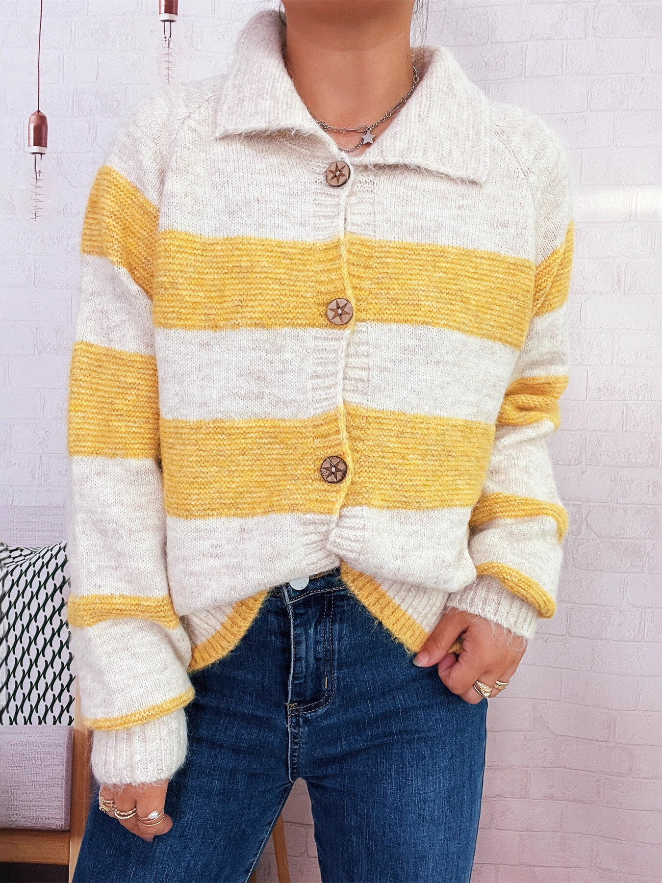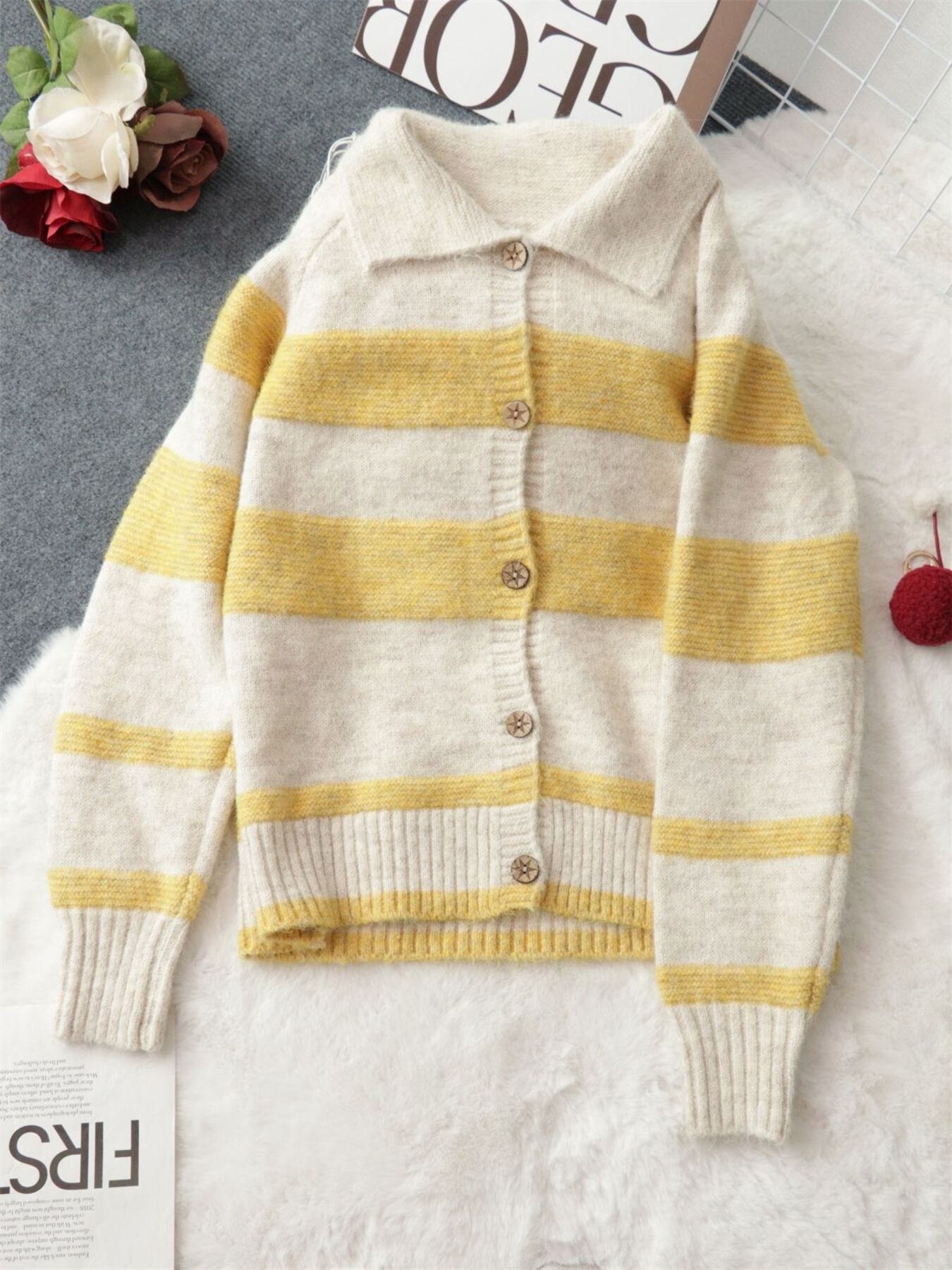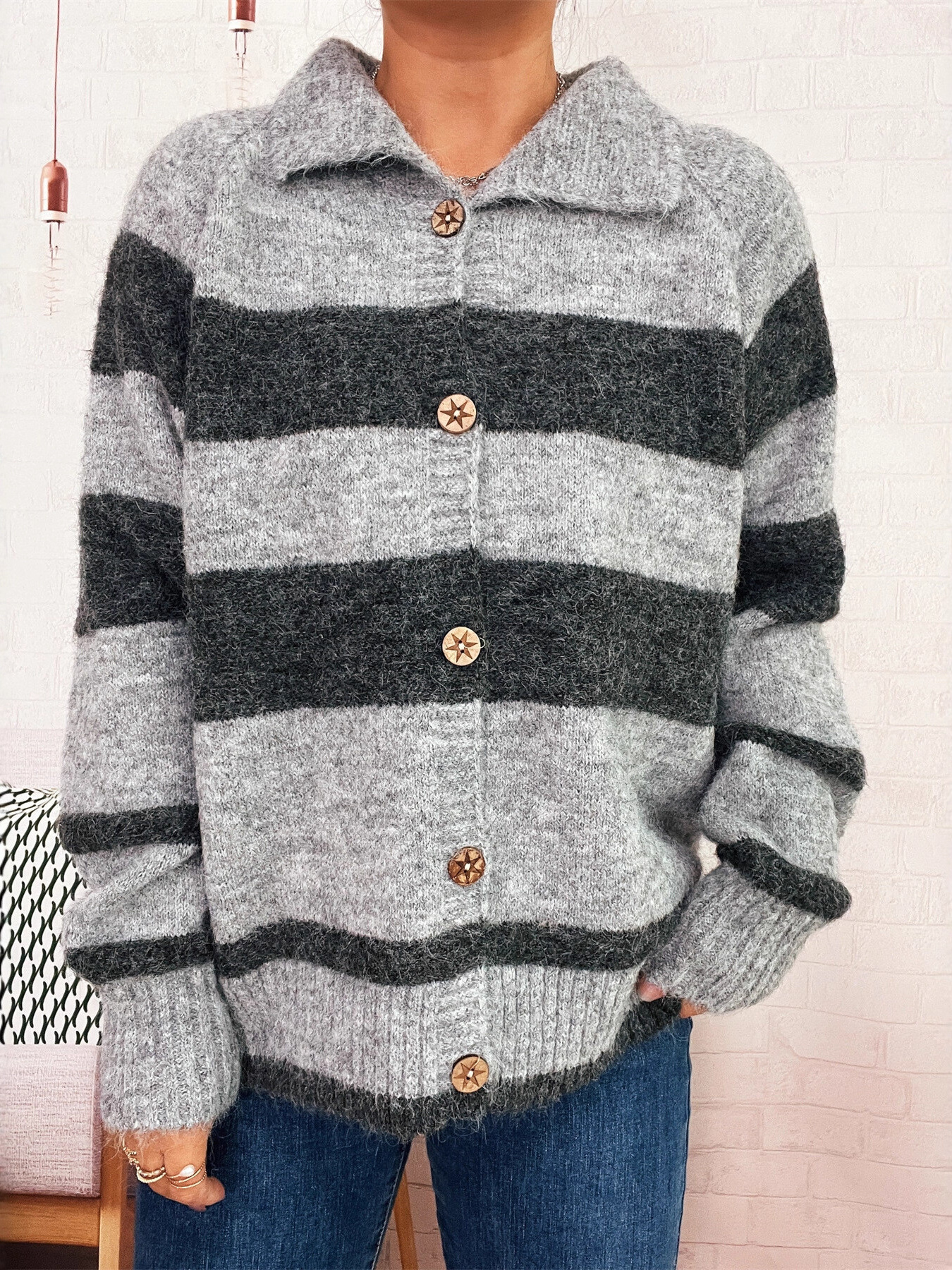 Striped Button-Up Cozy Cardigan
