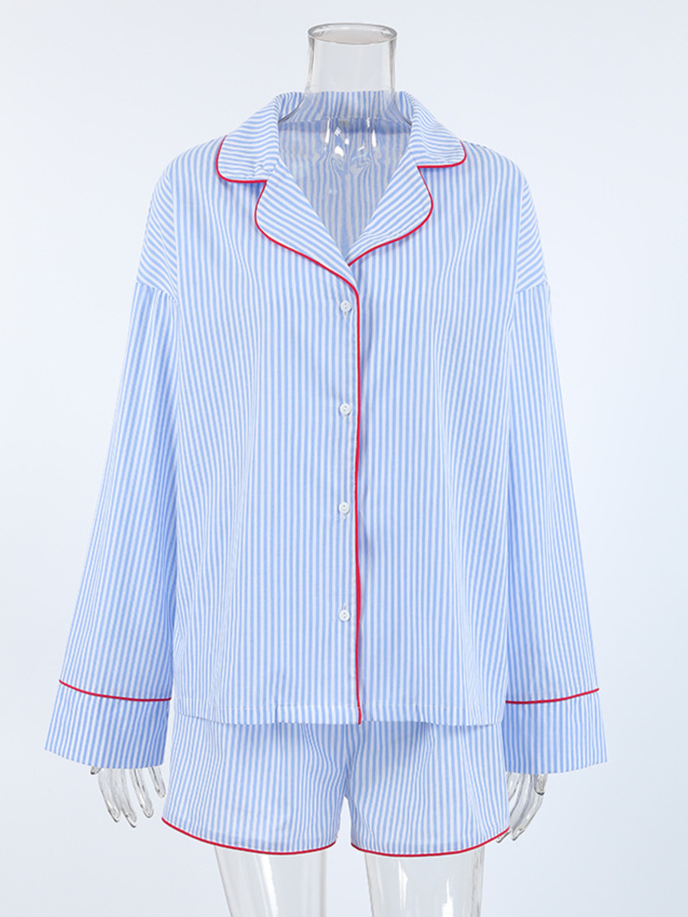 Striped Button Up Shirt and Shorts Lounge Set