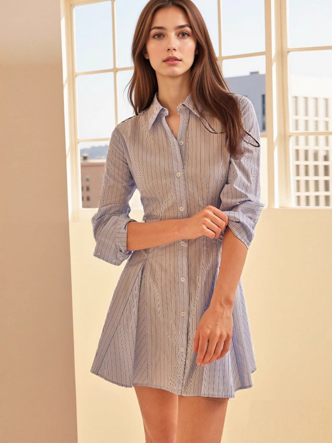 Striped Button Up Shirt Dress