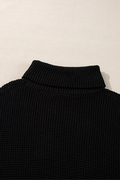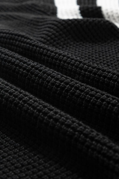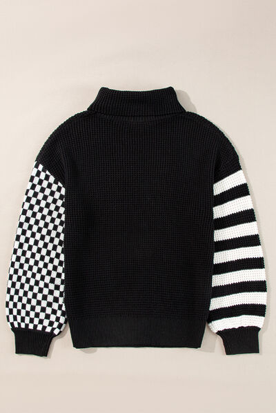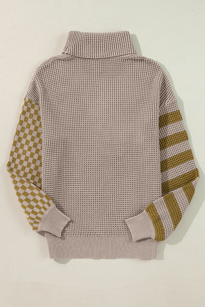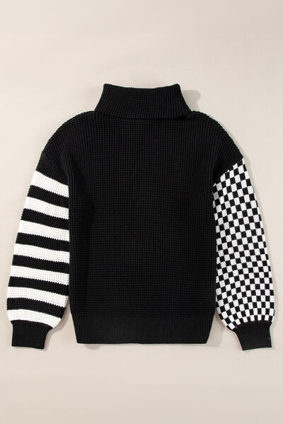 Striped & Checkered Turtleneck Dropped Shoulder Sweater