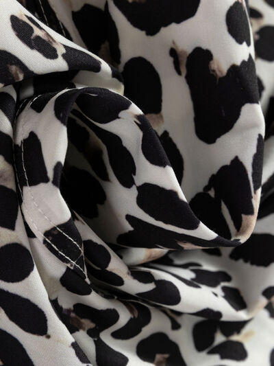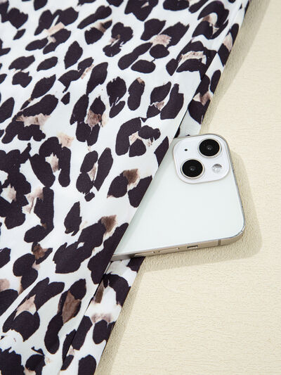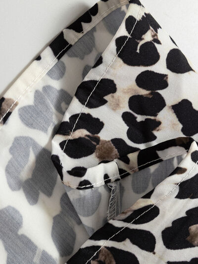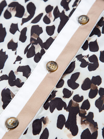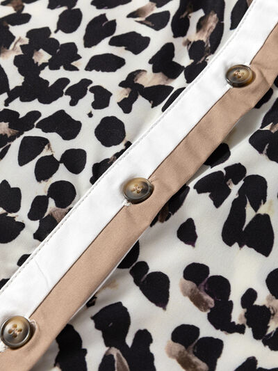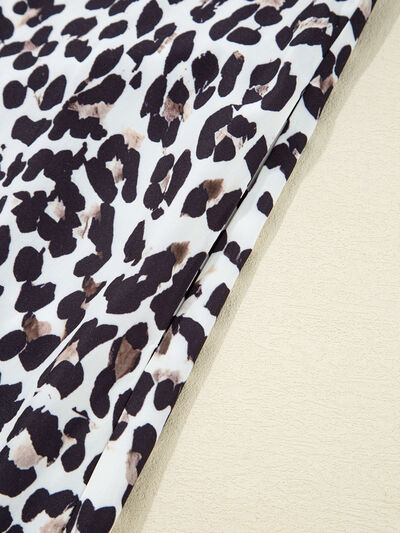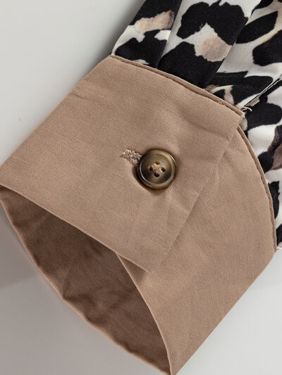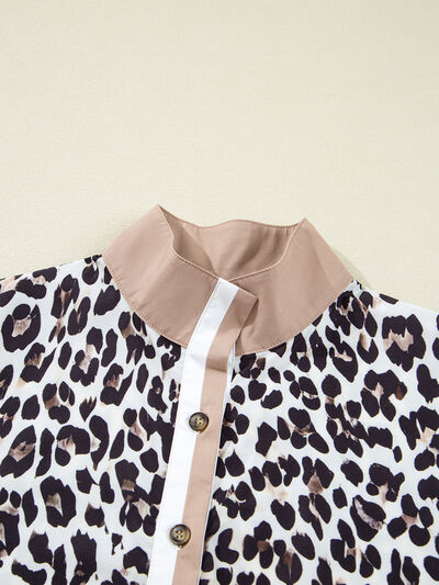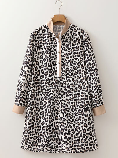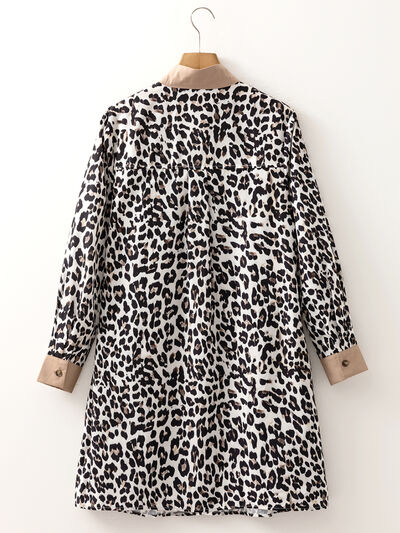 Striped Collar Leopard Print Long Sleeve Flared Dress