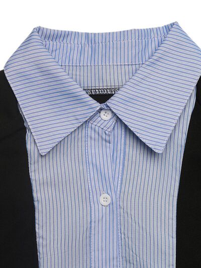 Striped Collar Long Sleeve Fake Two-Piece Blazer