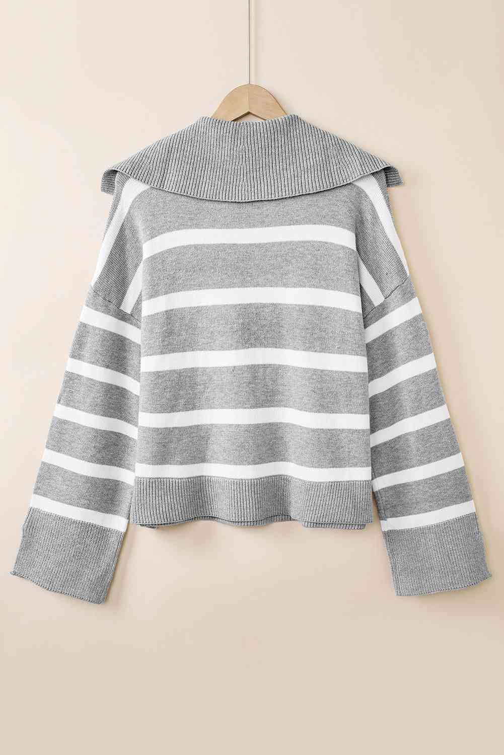 Striped Collared Neck Slit Sweater
