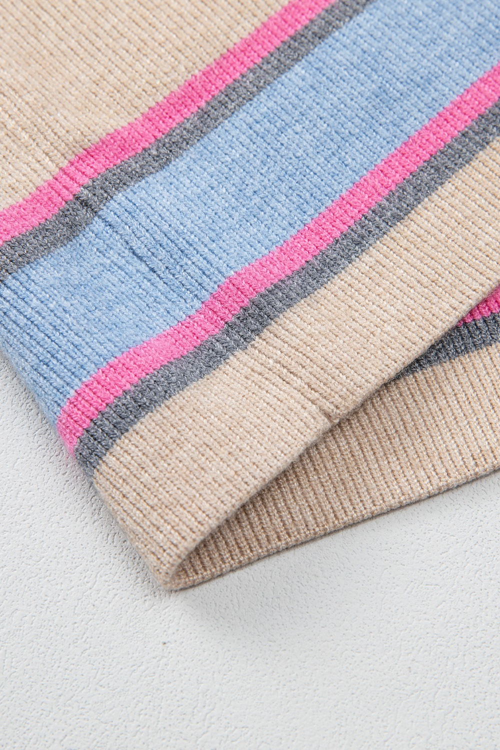 Striped Color Block Johnny Collar Sweater