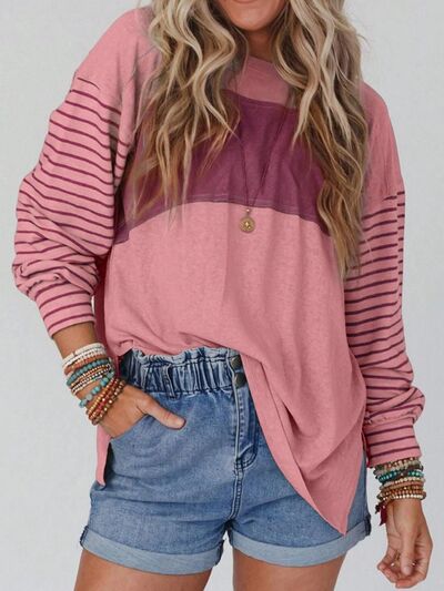 Striped Color Block Long Sleeve T-Shirt