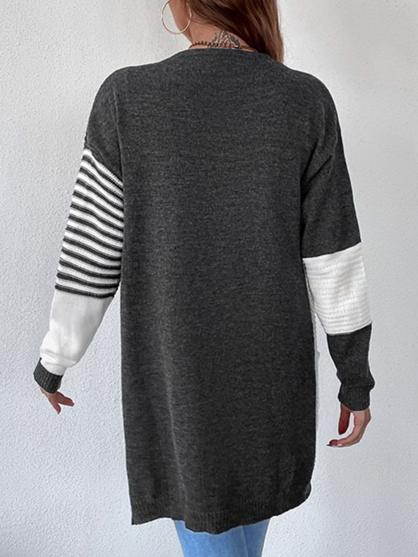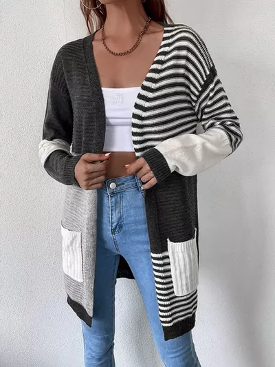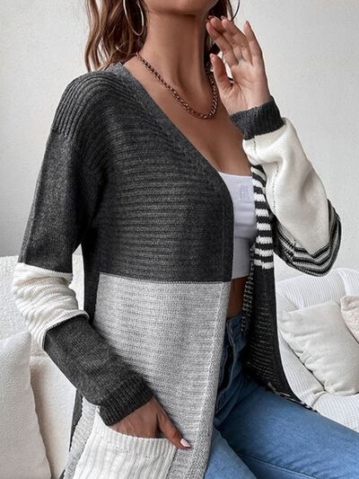 Striped Color Block Open Front Cardigan