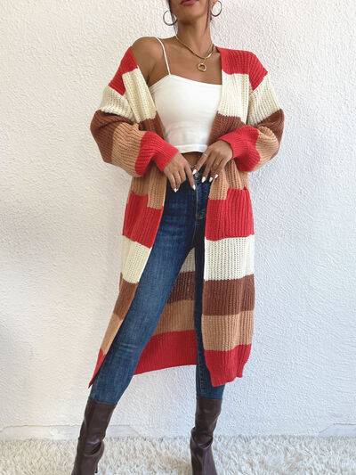 Striped Color Block Open Front Knit Cardigan