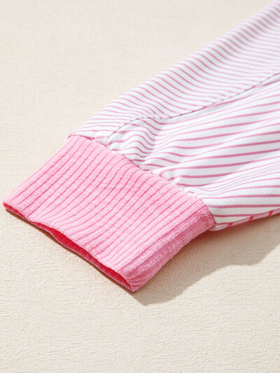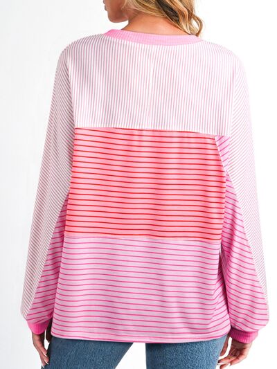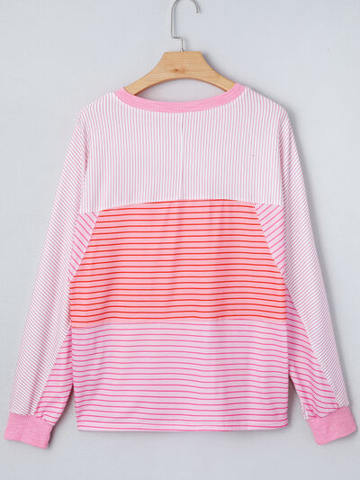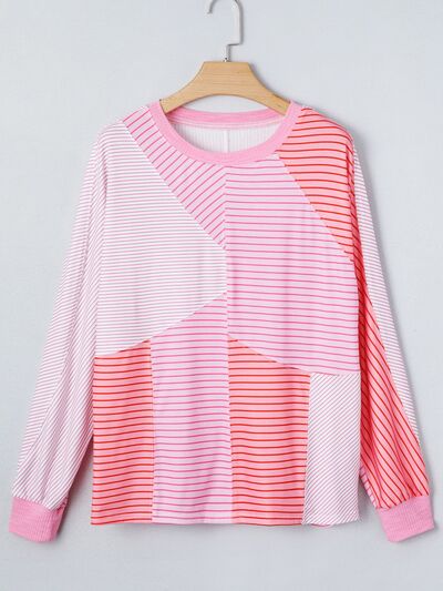 Striped Colorblock Exposed Seam Casual Long Sleeve Top