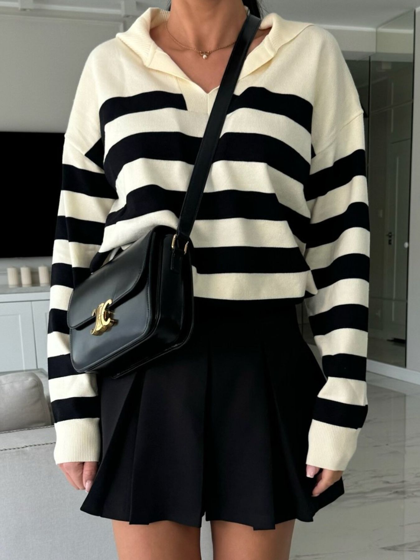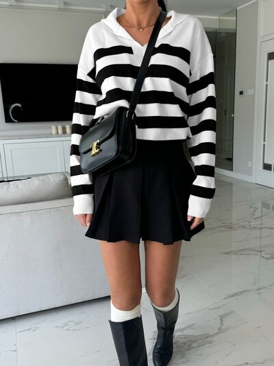 Striped Dropped Shoulder Knit Top