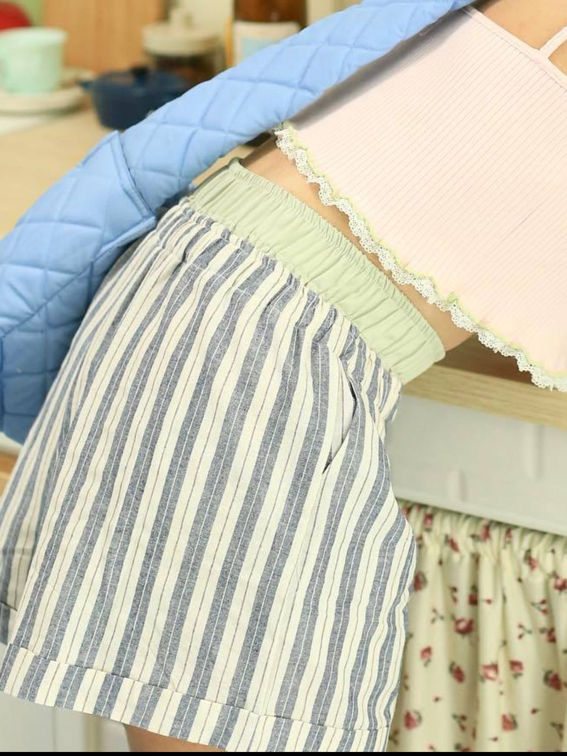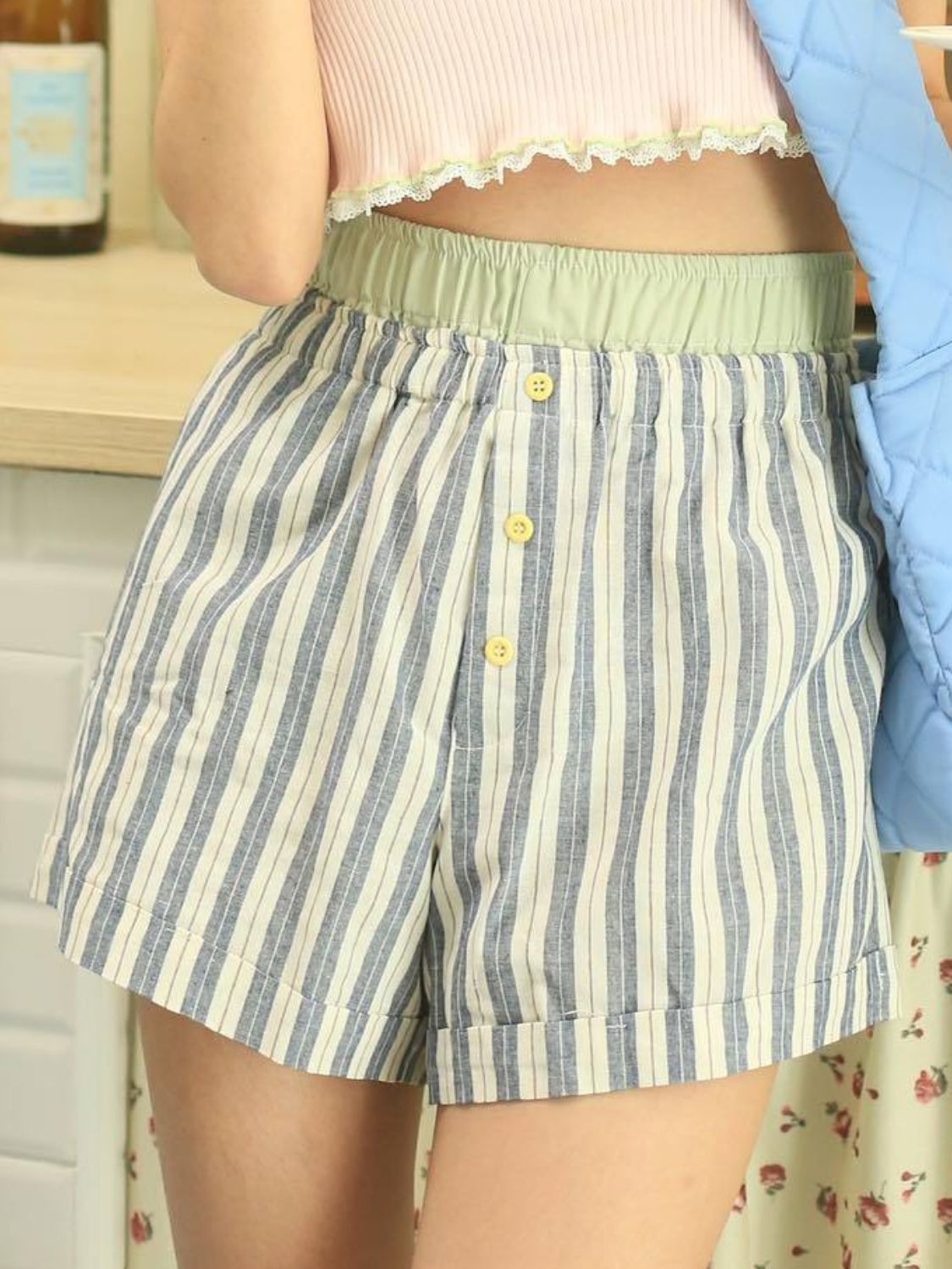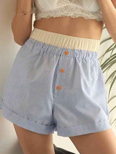 Striped Elastic Waist Shorts