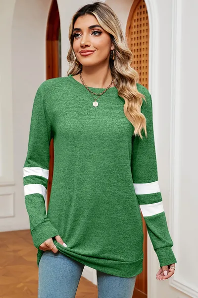 Striped Heathered Round Neck T-Shirt
