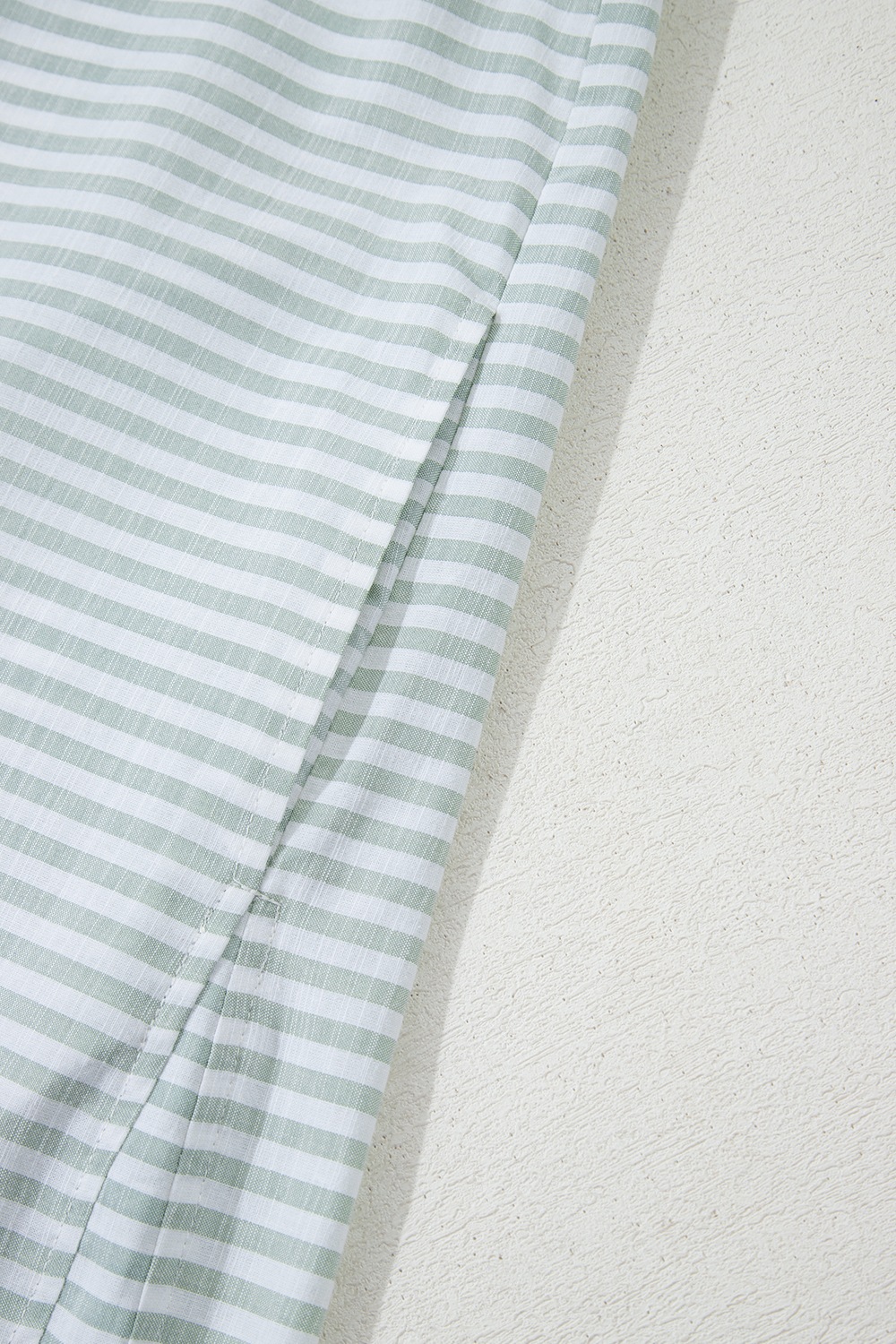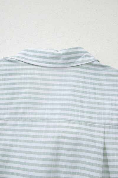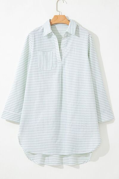 Striped Johnny Collar Long Sleeve Mini Shirt Dress
