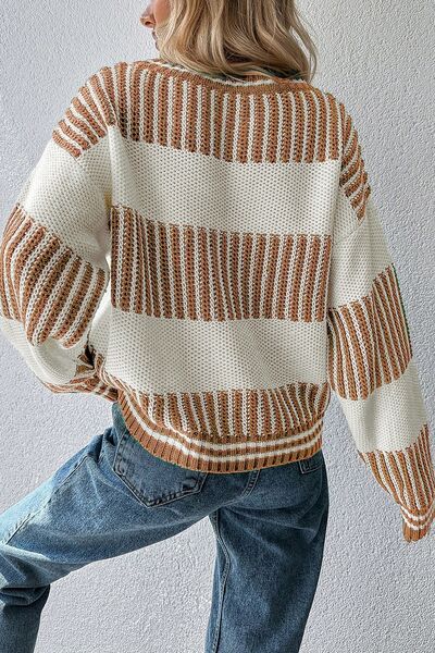 Striped Knit Long Sleeve Sweater