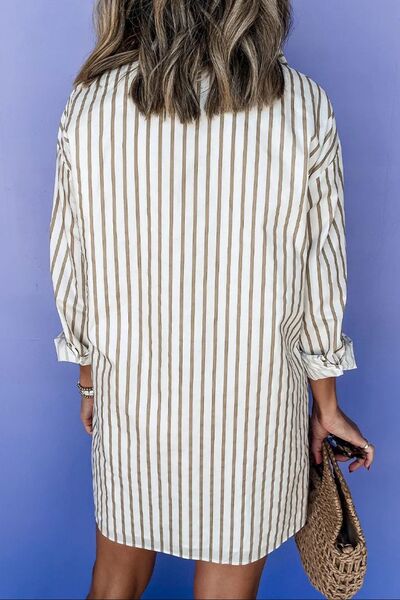 Striped Long Sleeve Mini Shirt Dress