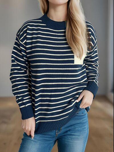 Striped Mock Neck Long Sleeve Sweater