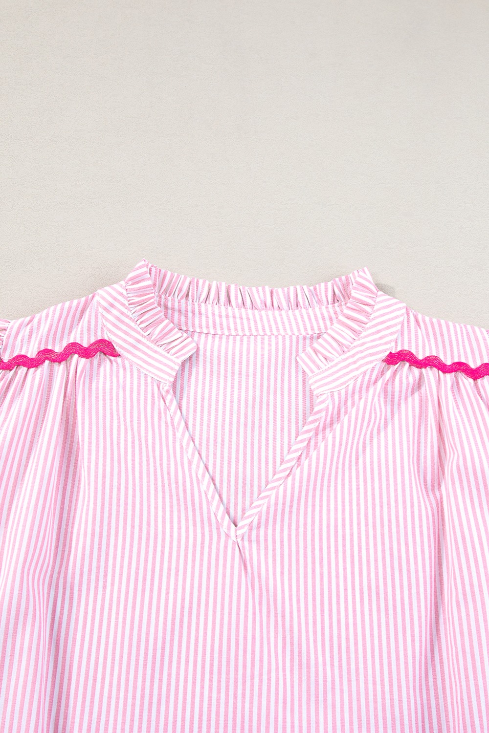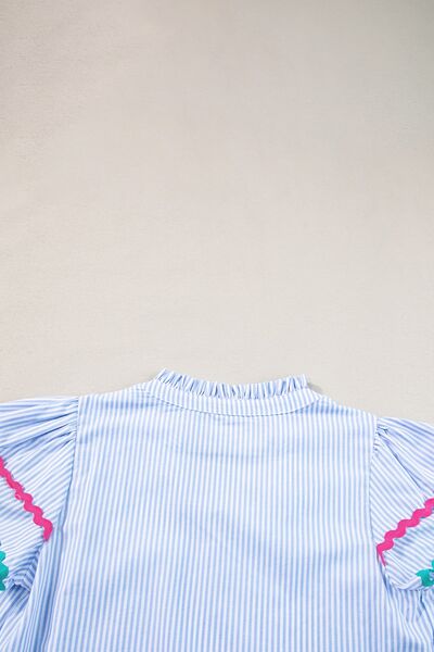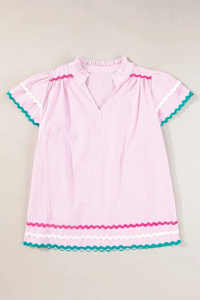 Striped Notched Short Sleeve Blouse