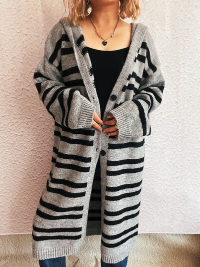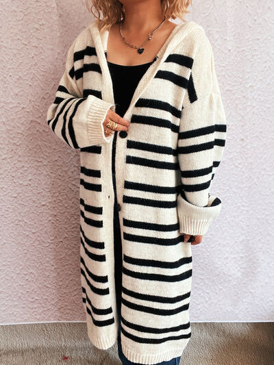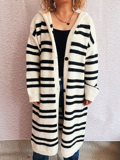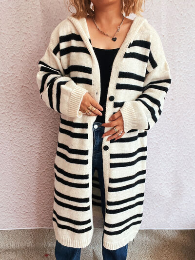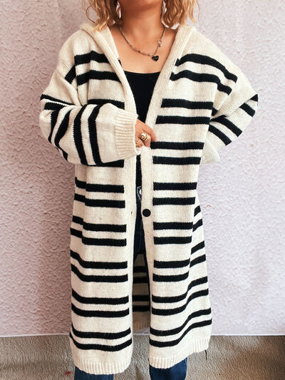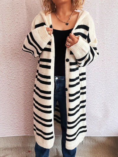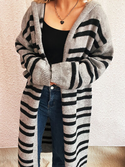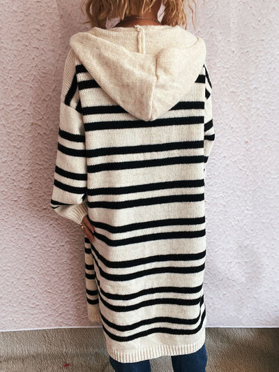 Striped Open Front Hooded Cardigan