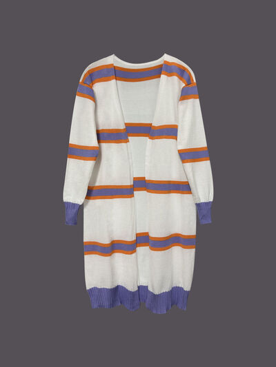 Striped Open Front Longline Cardigan