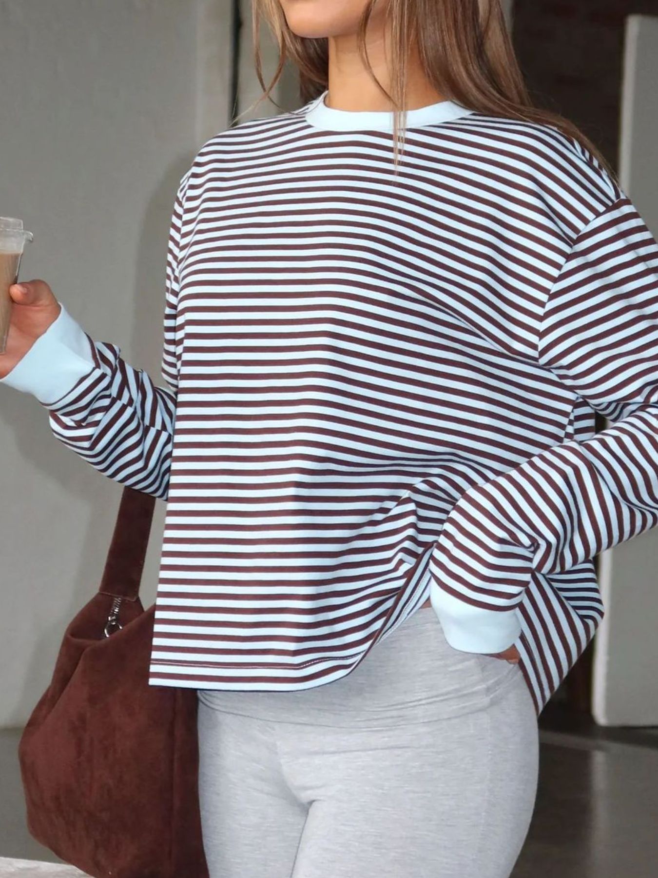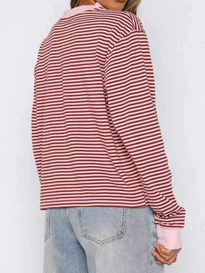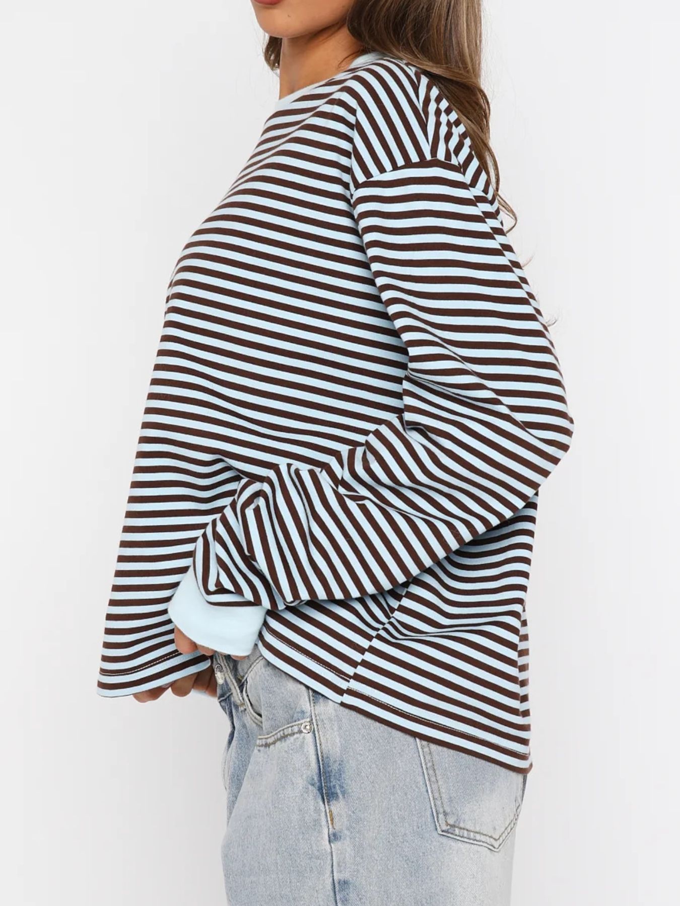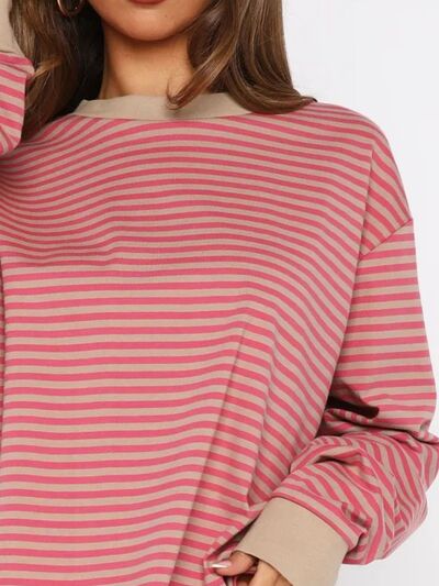Striped Oversized Round Neck Sweatshirt