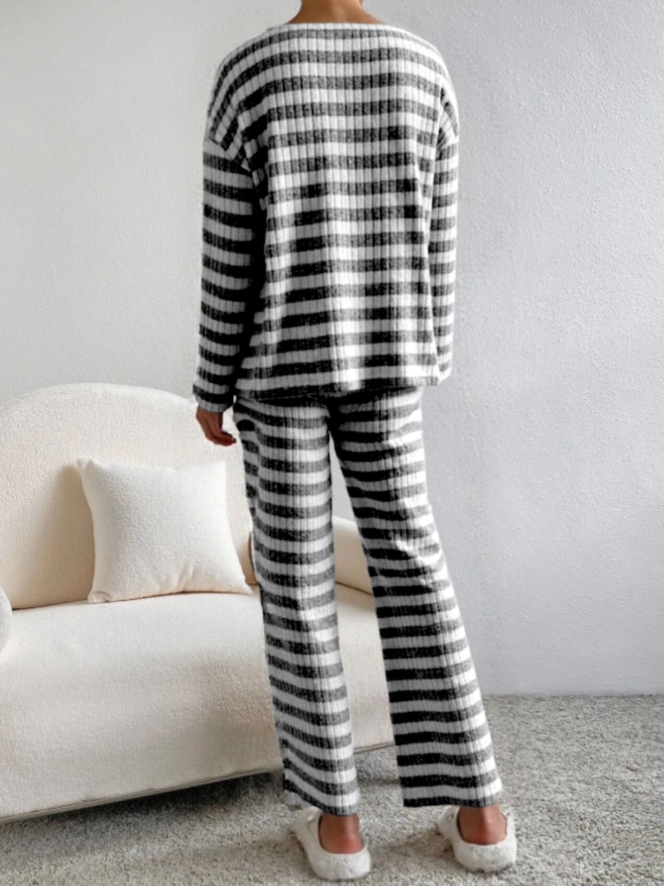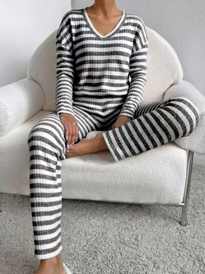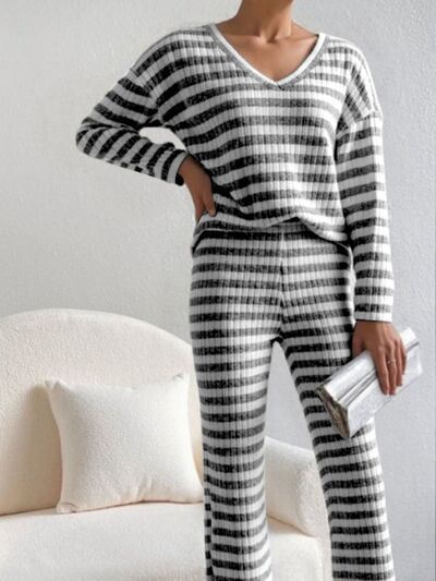 Striped Ribbed Knit Top and Pants Set
