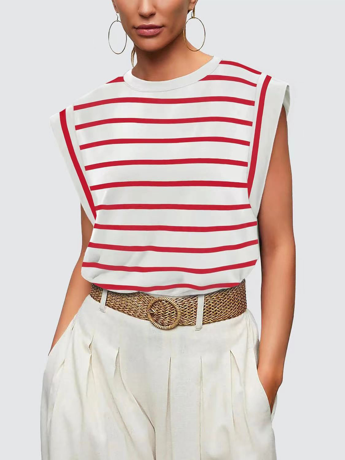 Striped Round Neck Cap Sleeve T-Shirt