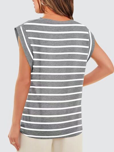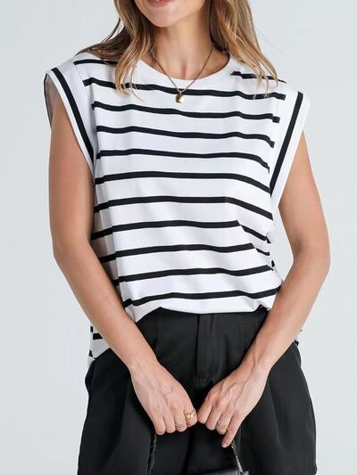 Striped Round Neck Cap Sleeve T-Shirt