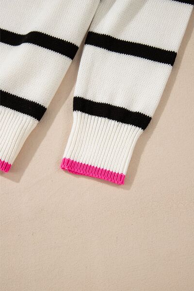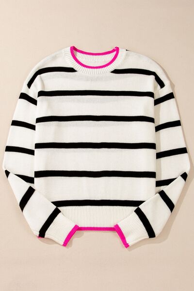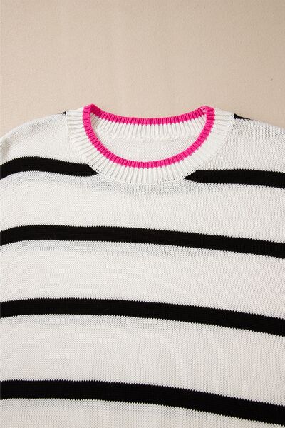 Striped Round Neck Drop Shoulder Sweater