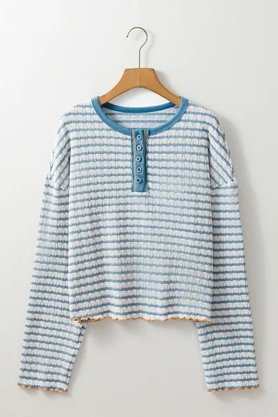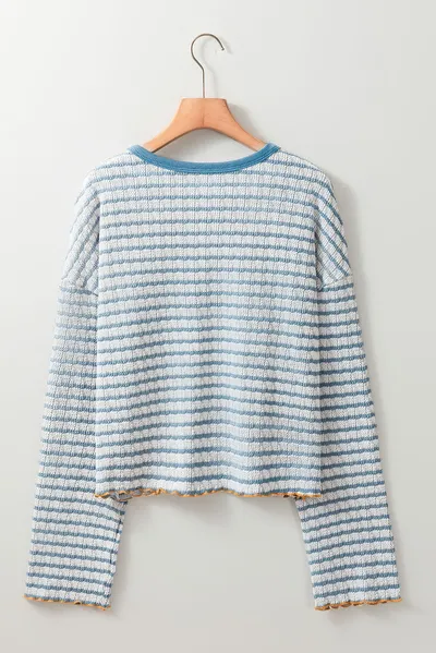 Striped Round Neck Dropped Shoulder Long Sleeve Top