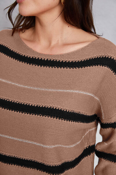 Striped Round Neck Dropped Shoulder Sweater