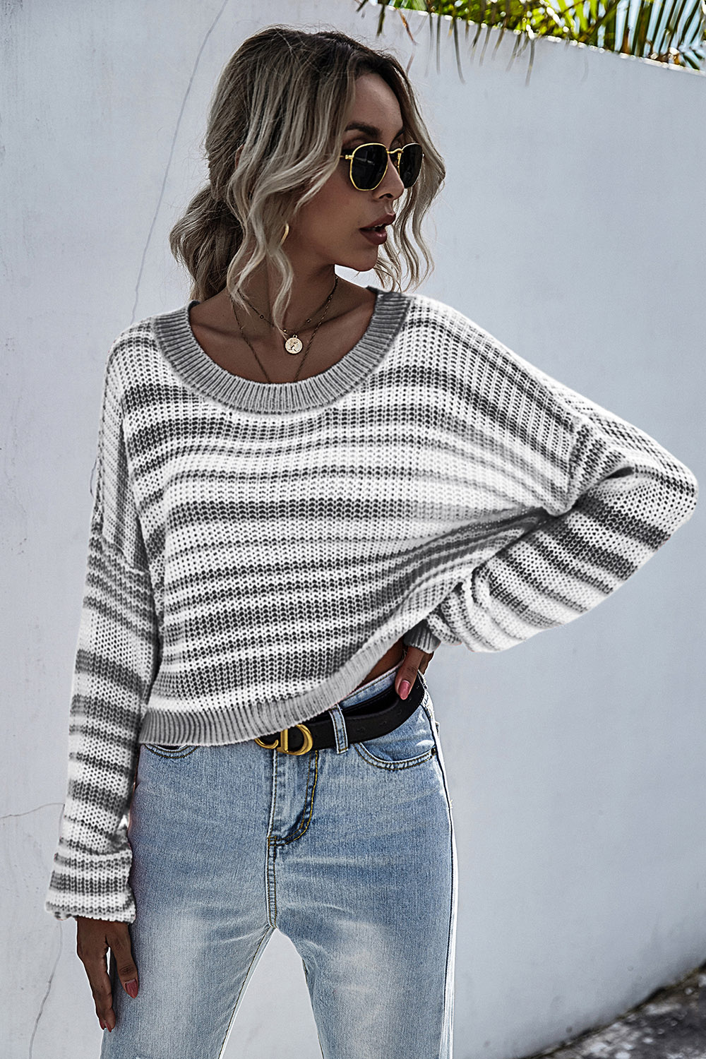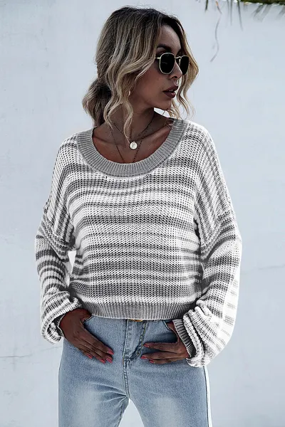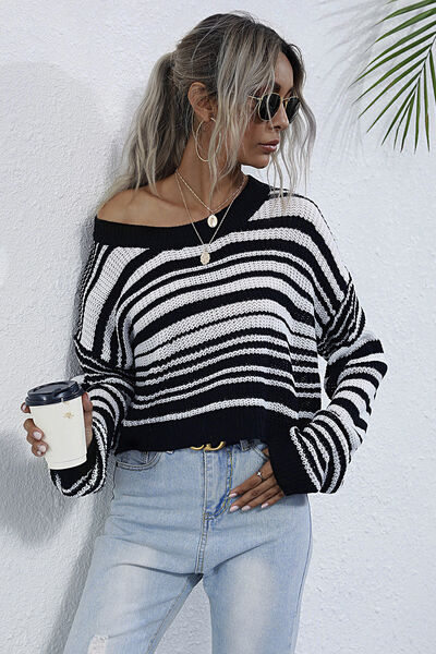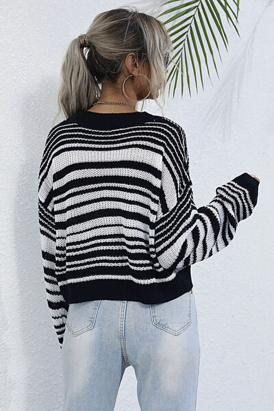 Striped Round Neck Dropped Shoulder Sweater