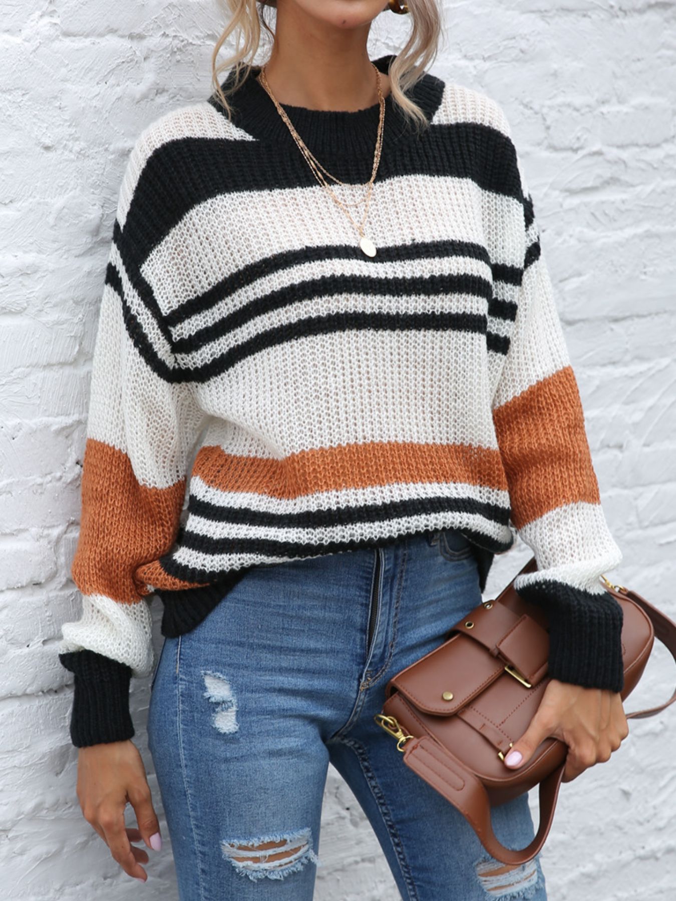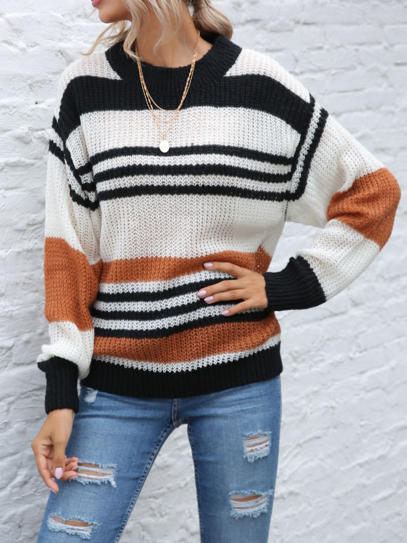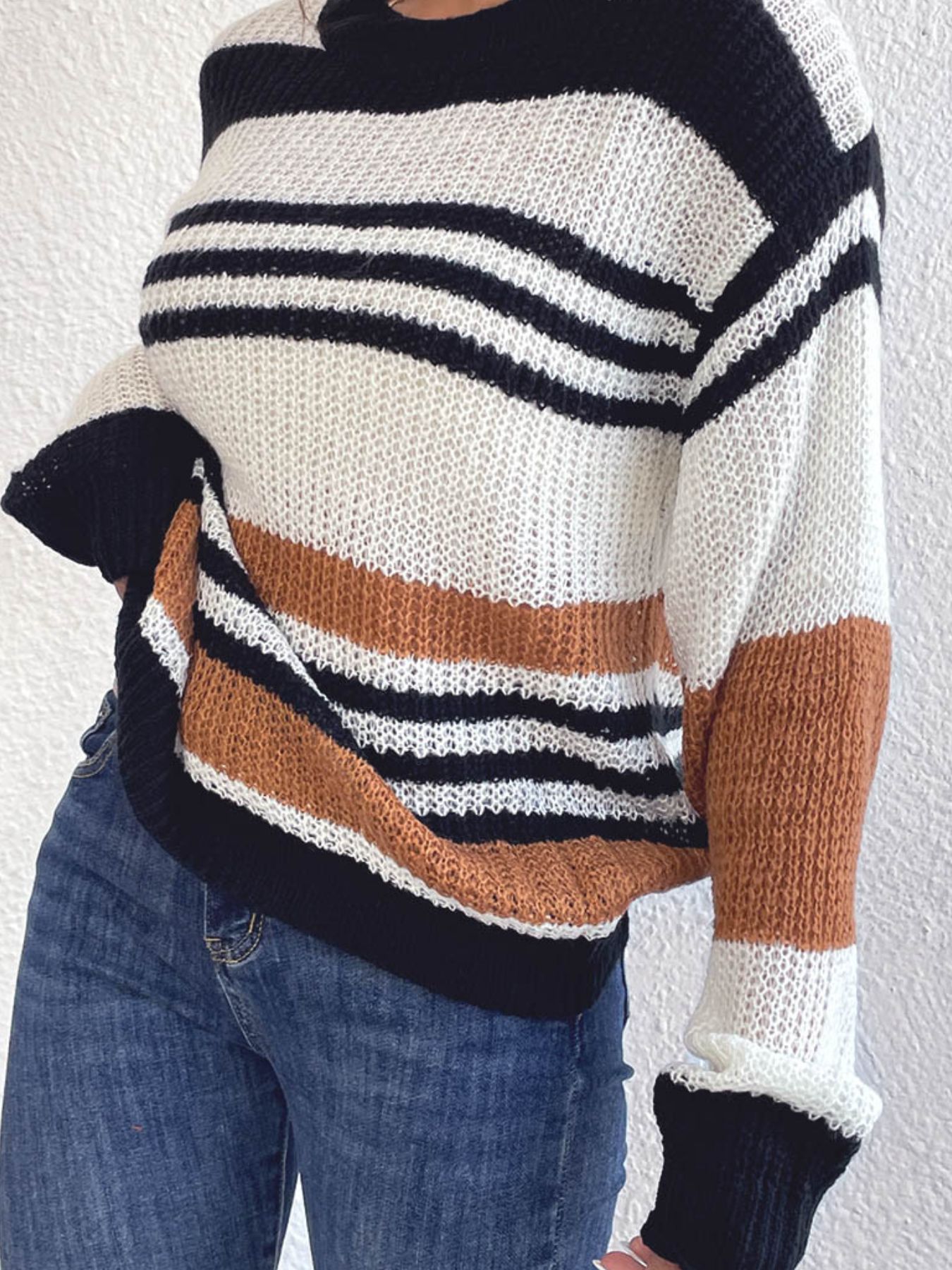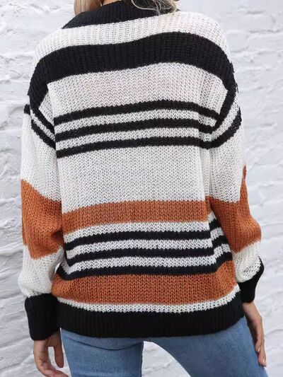 Striped Round Neck Knit Sweaer