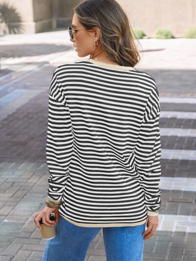 Striped Round Neck Long Sleeve Knit Top