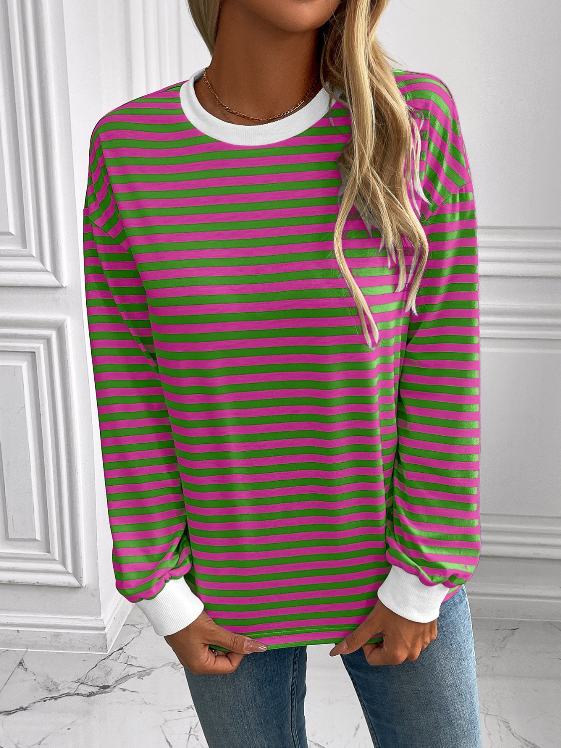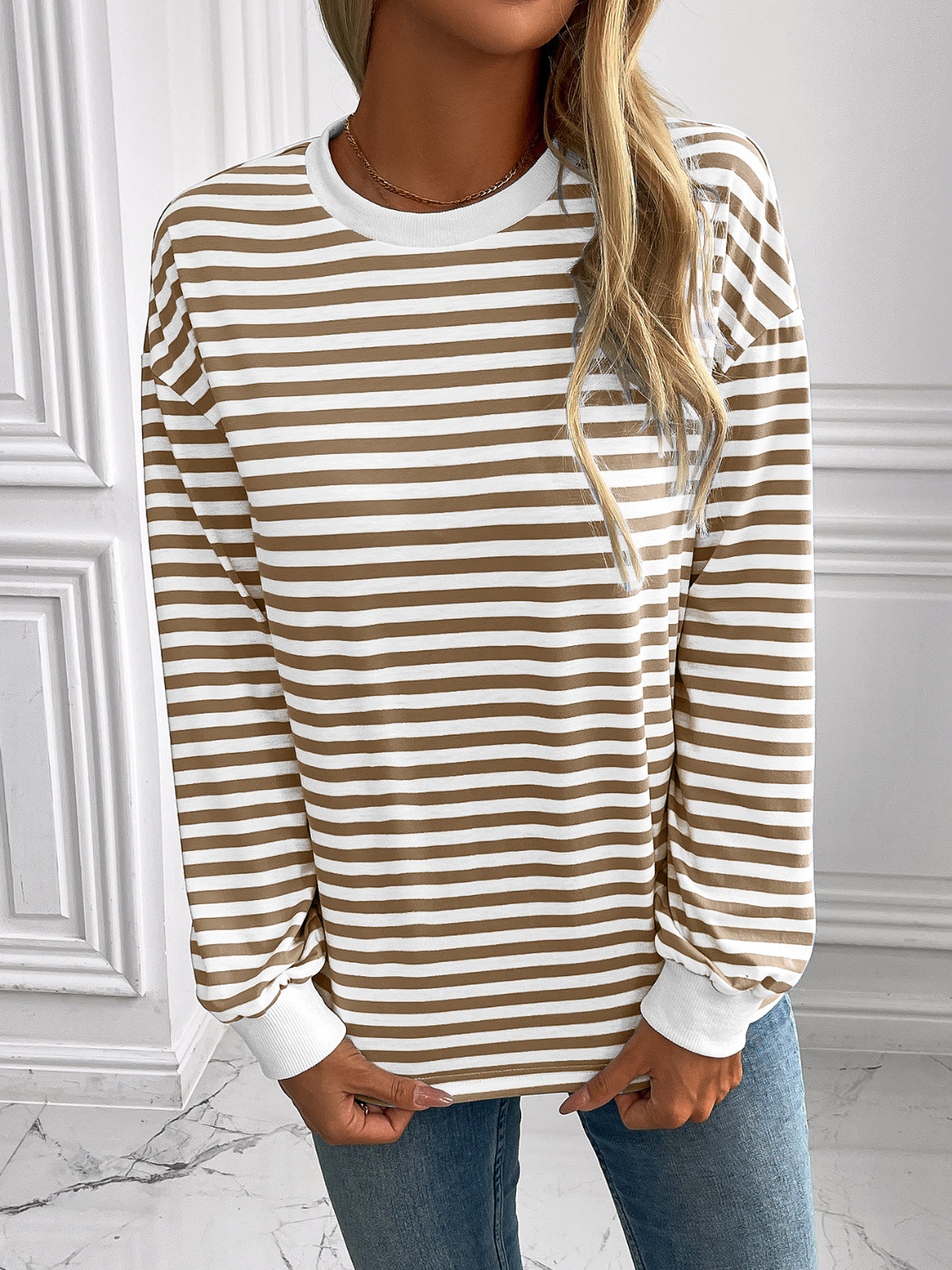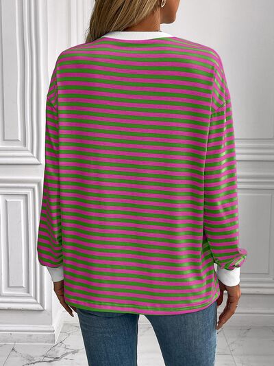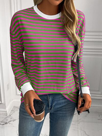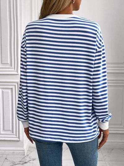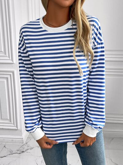 Striped Round Neck Long Sleeve Sweatshirt