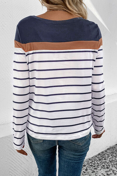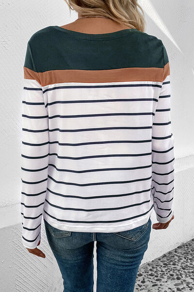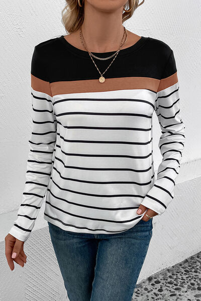 Striped Round Neck Long Sleeve T-Shirt