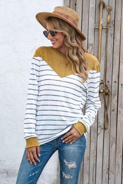 Striped Round Neck Long Sleeve T-Shirt