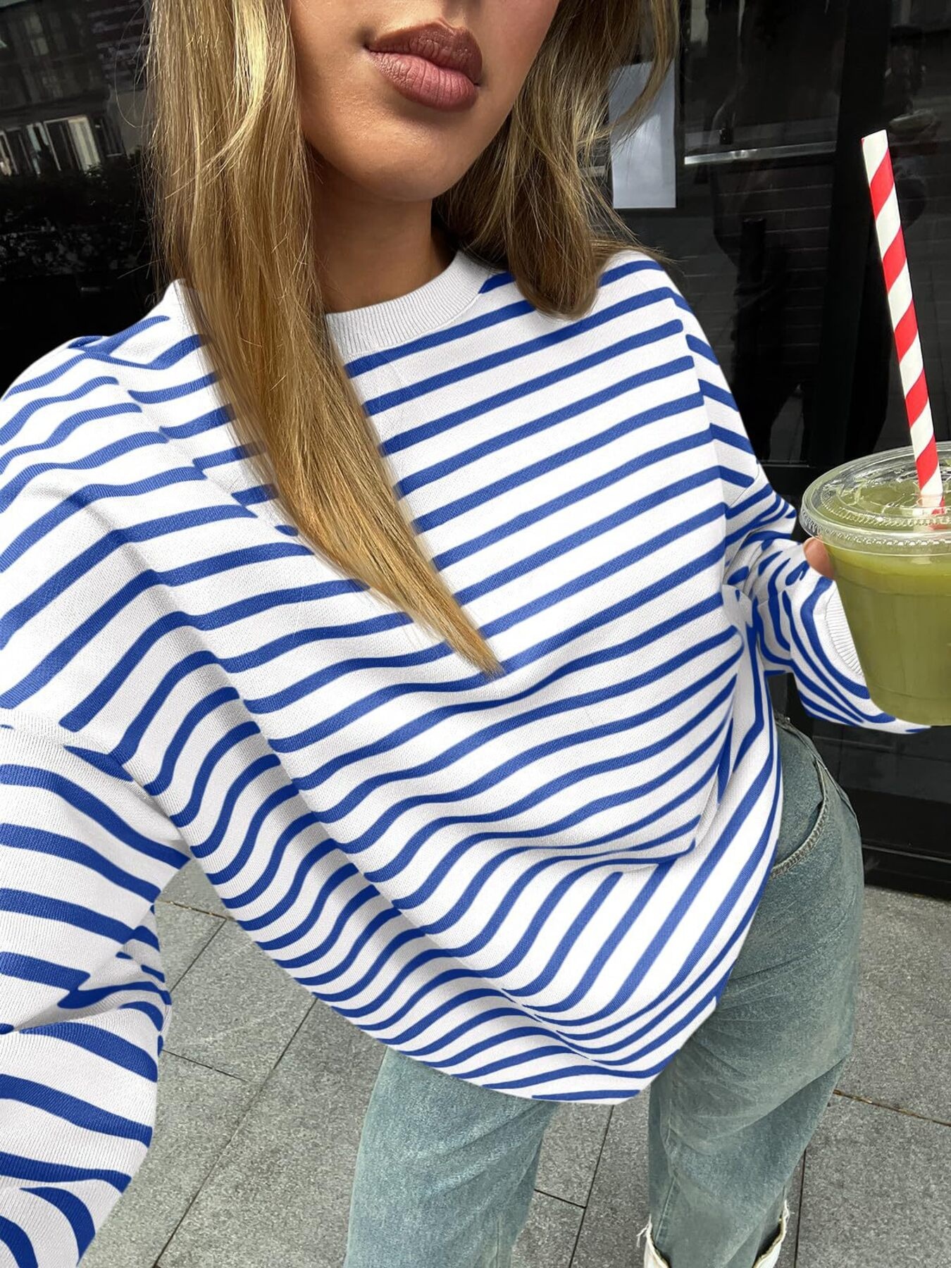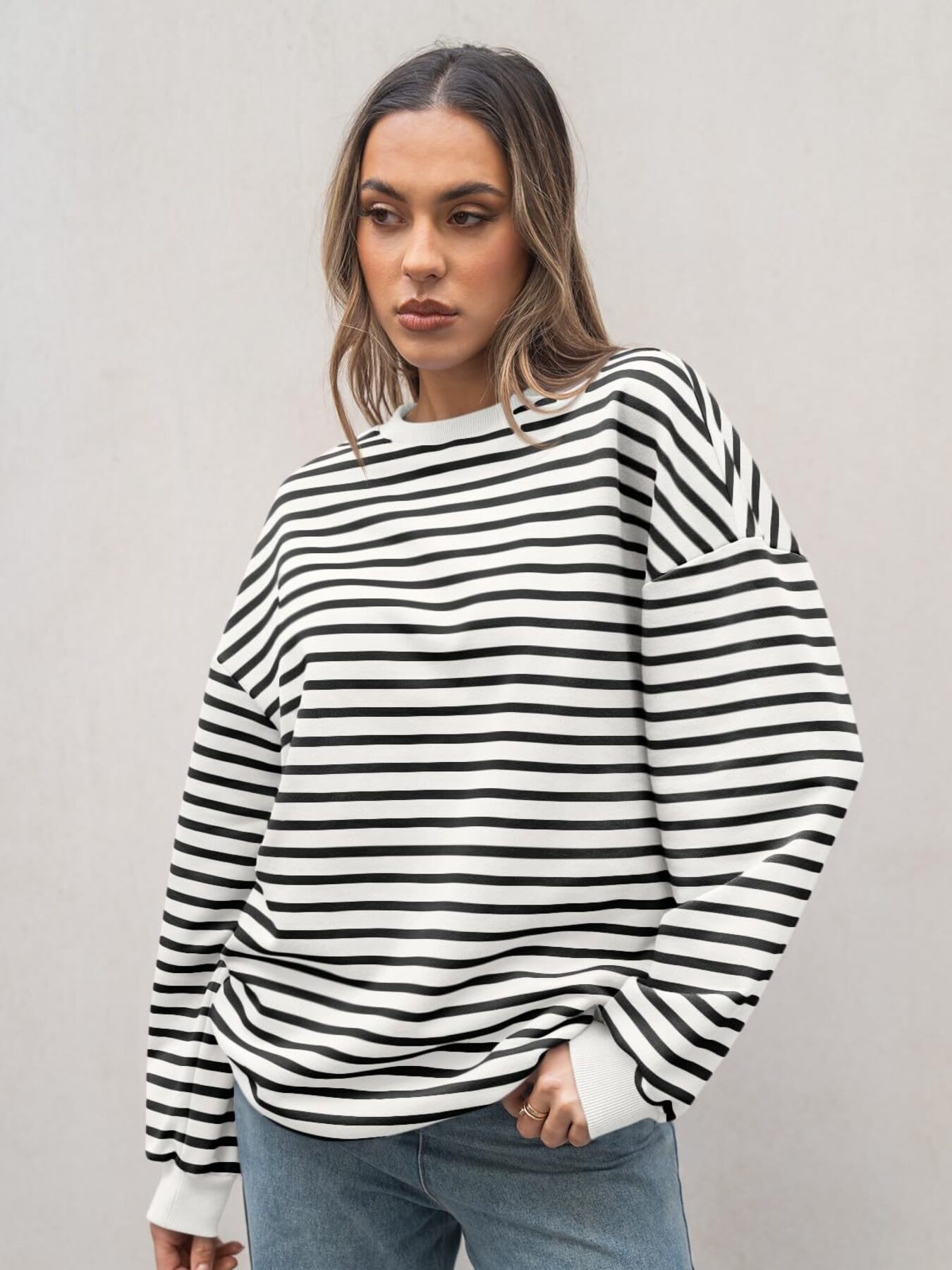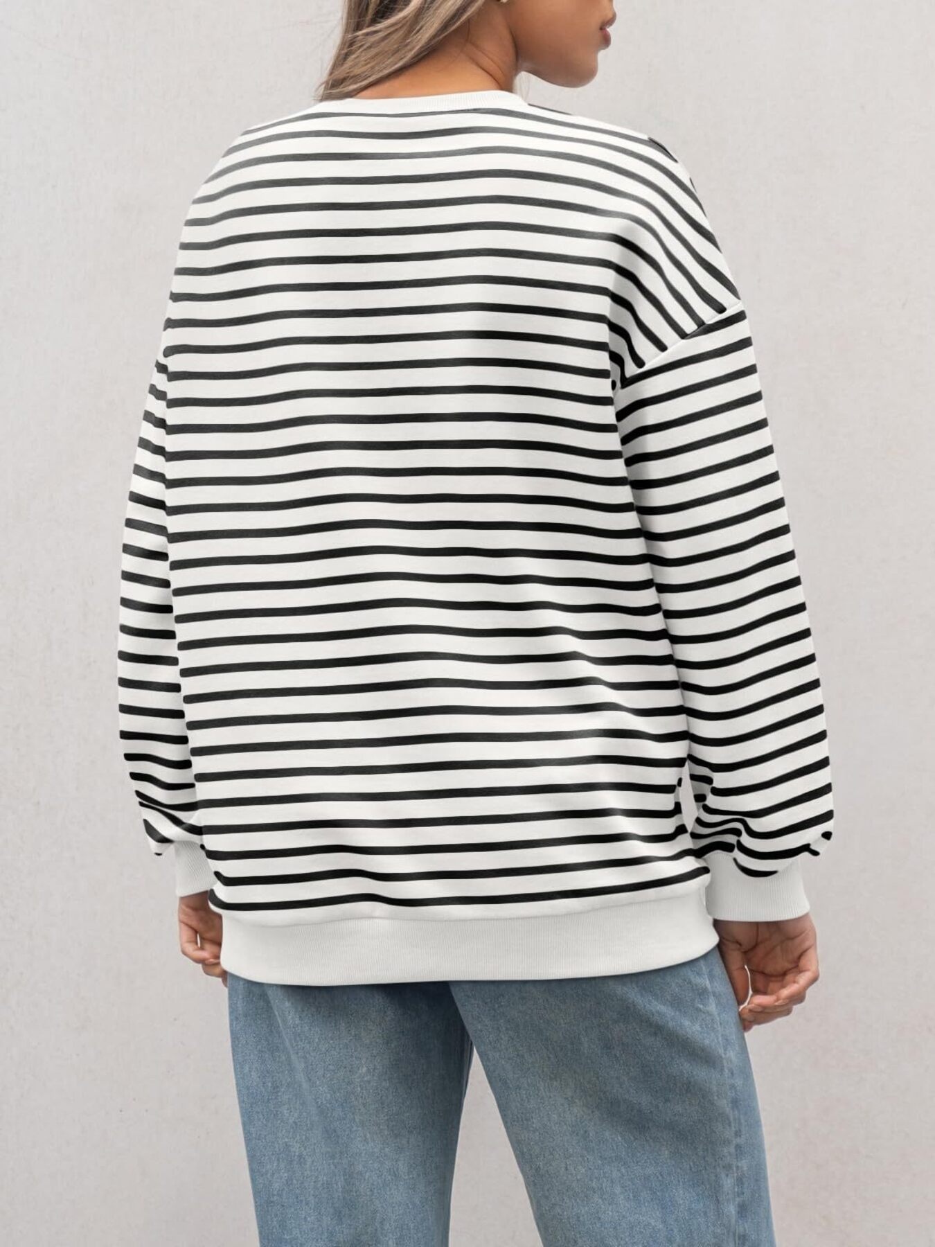 Striped Round Neck Oversized Casual Sweatshirt