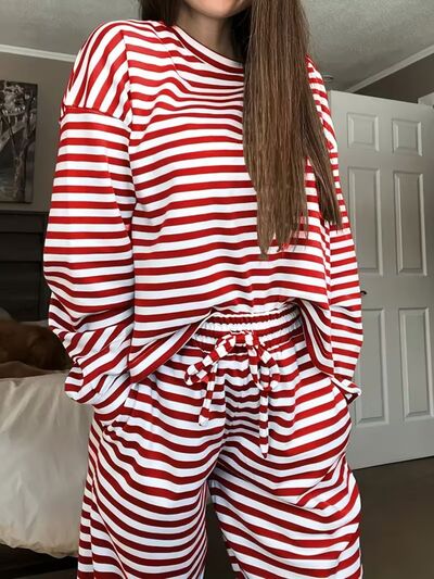 Striped Round Neck Top and Pants Set