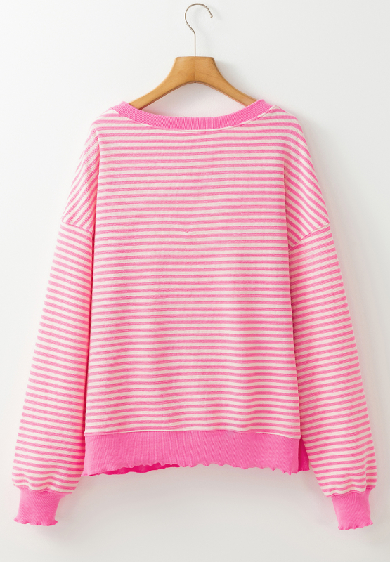 Striped Sequin Heart Round Neck Long Sleeve Sweatshirt