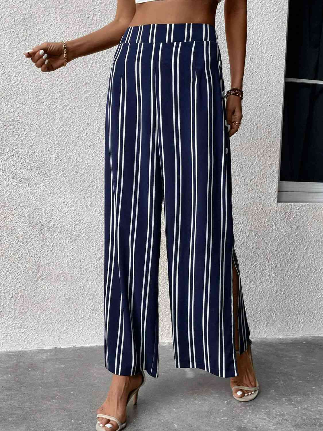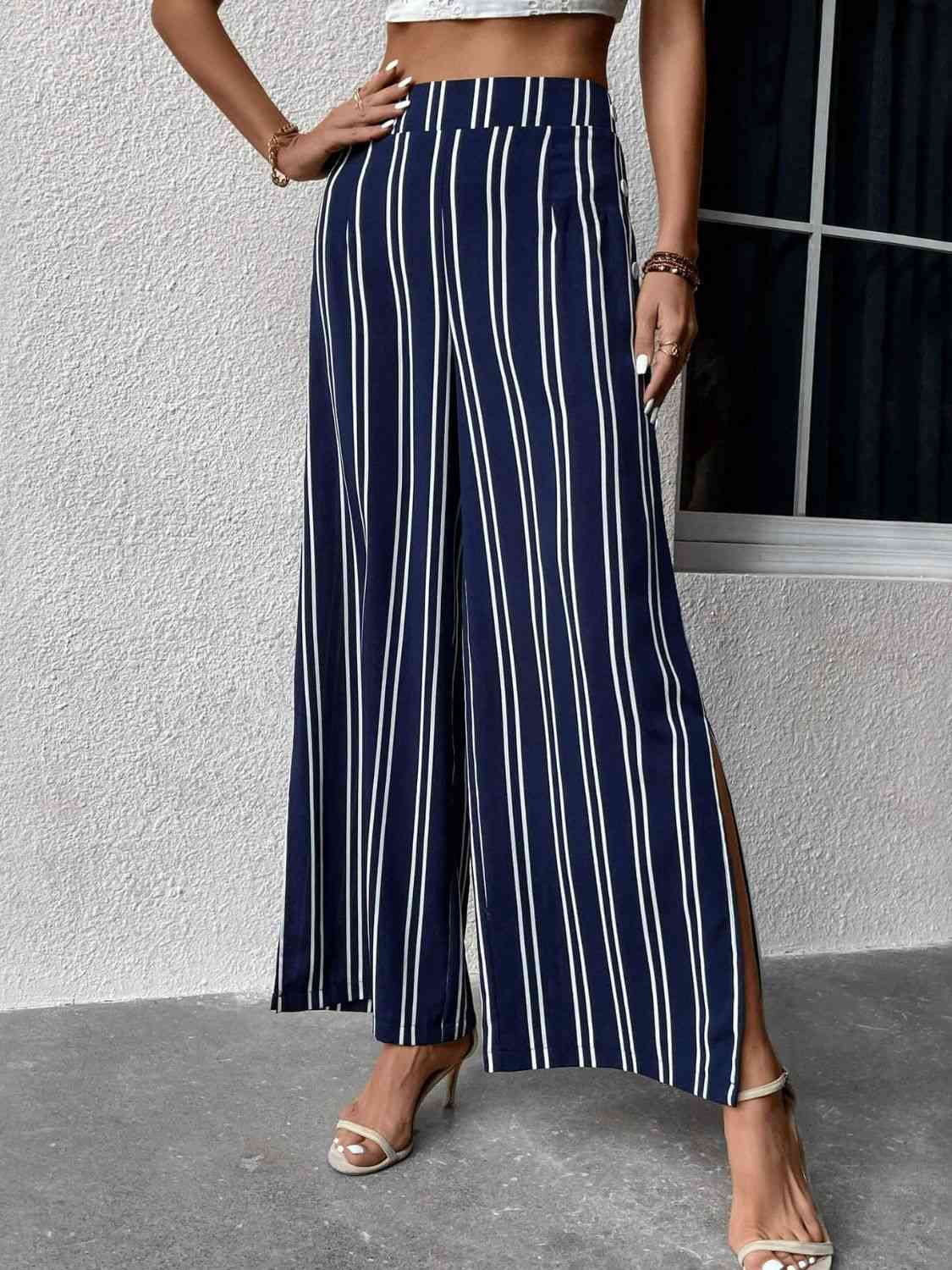 Striped Slit Wide Leg Pants
