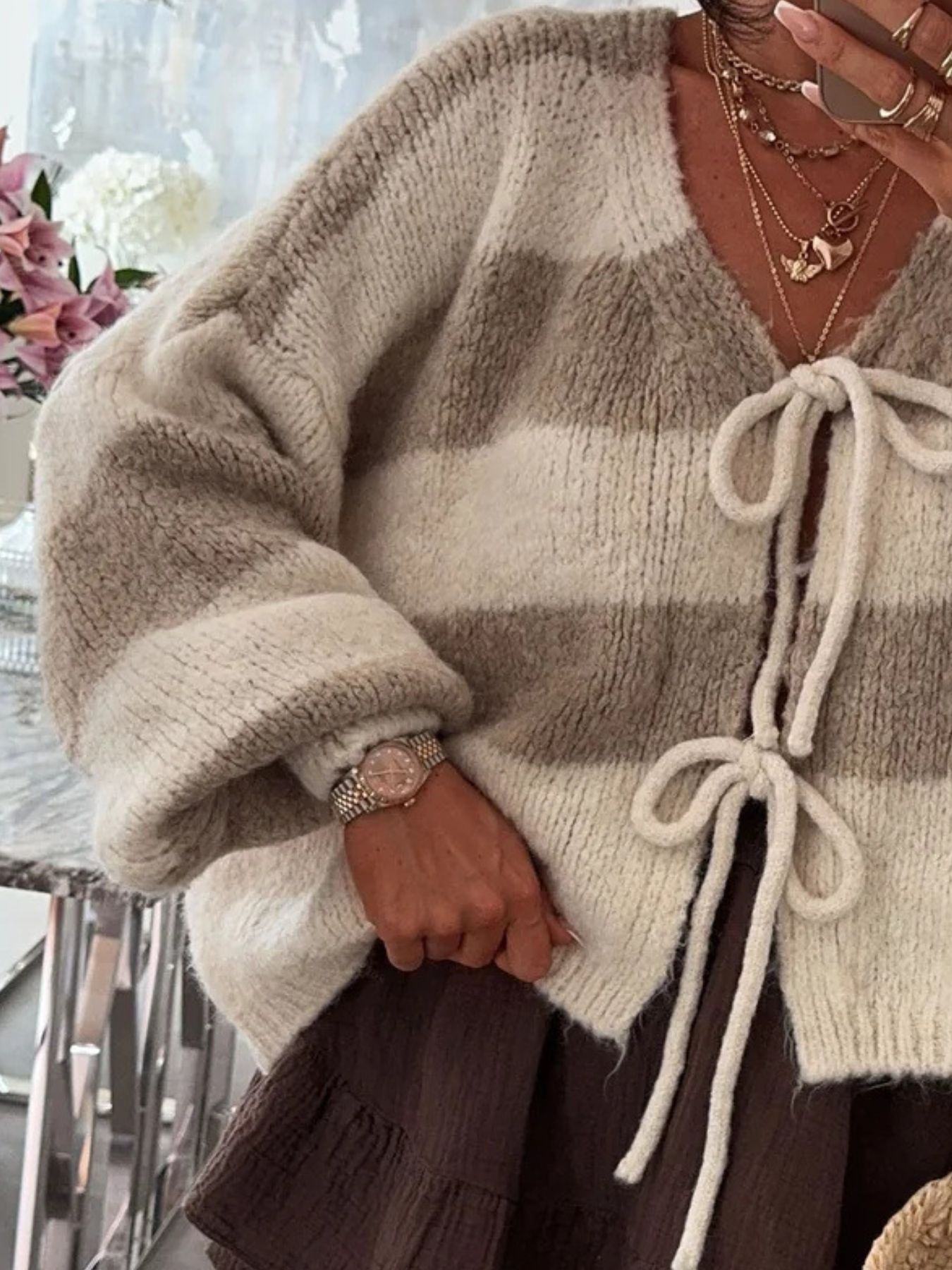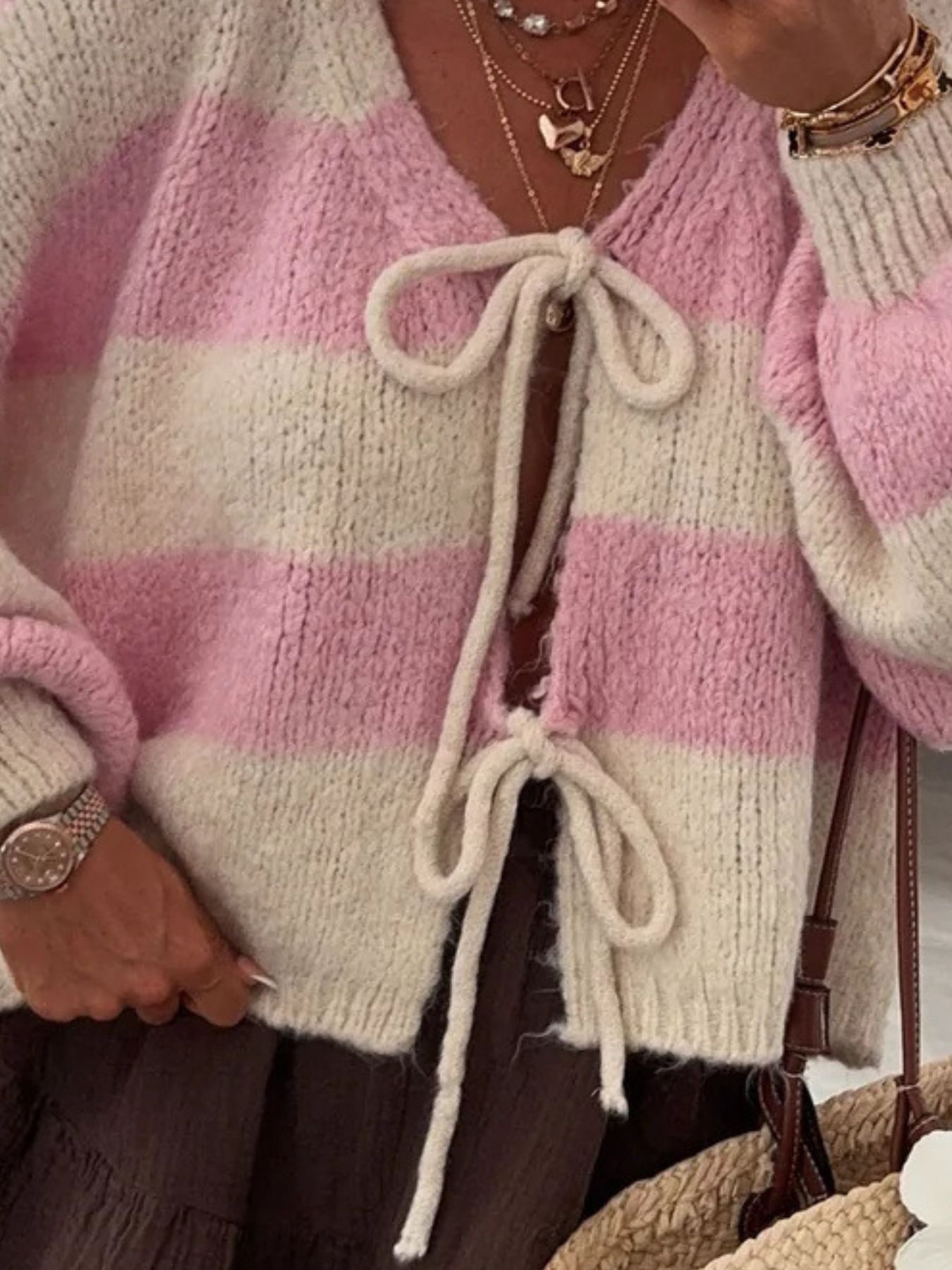 Striped Tie-Front Knit Cardigan