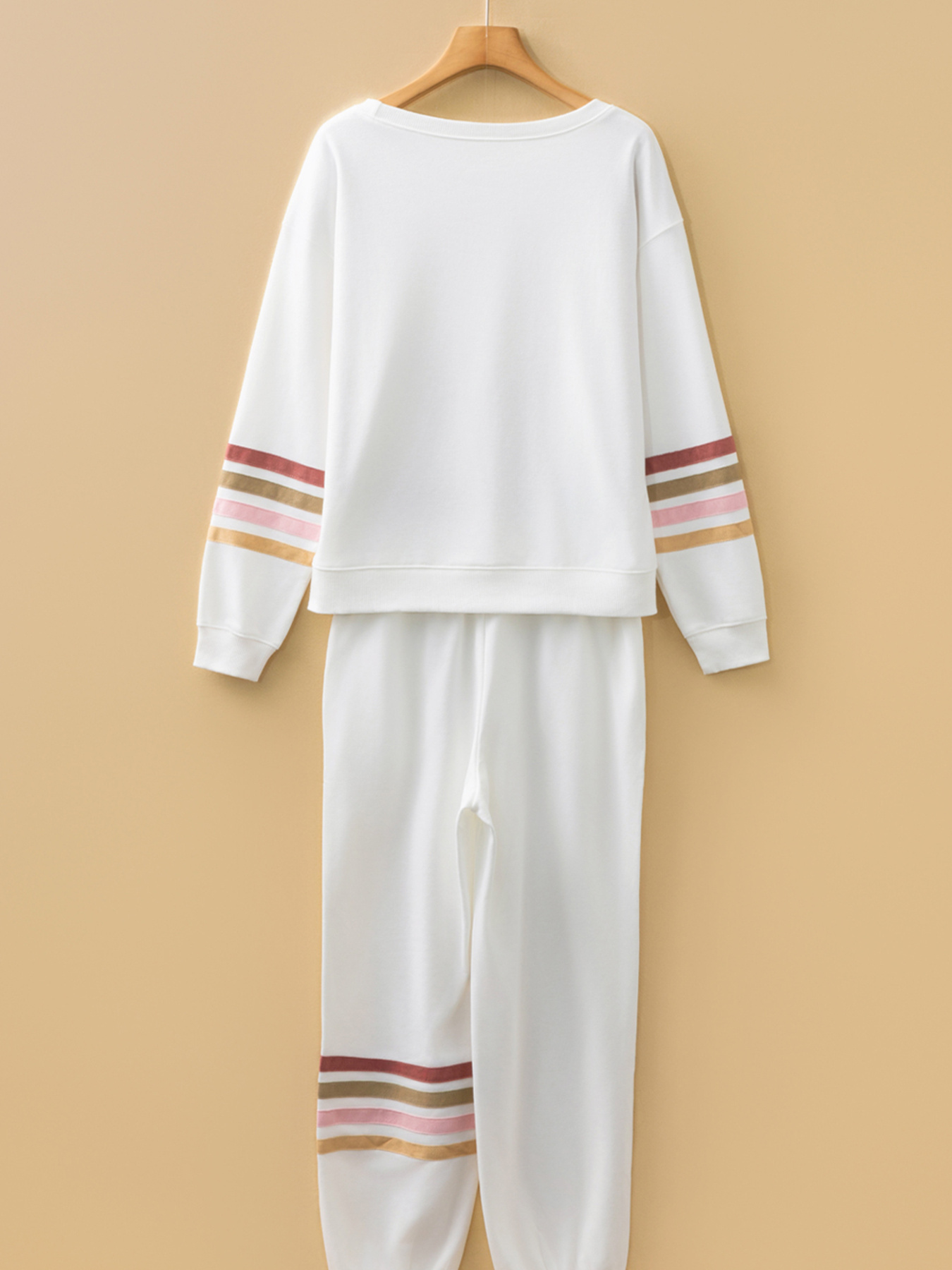 Striped Trim Round Neck Top and Pants Set