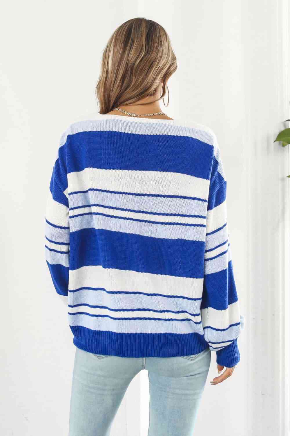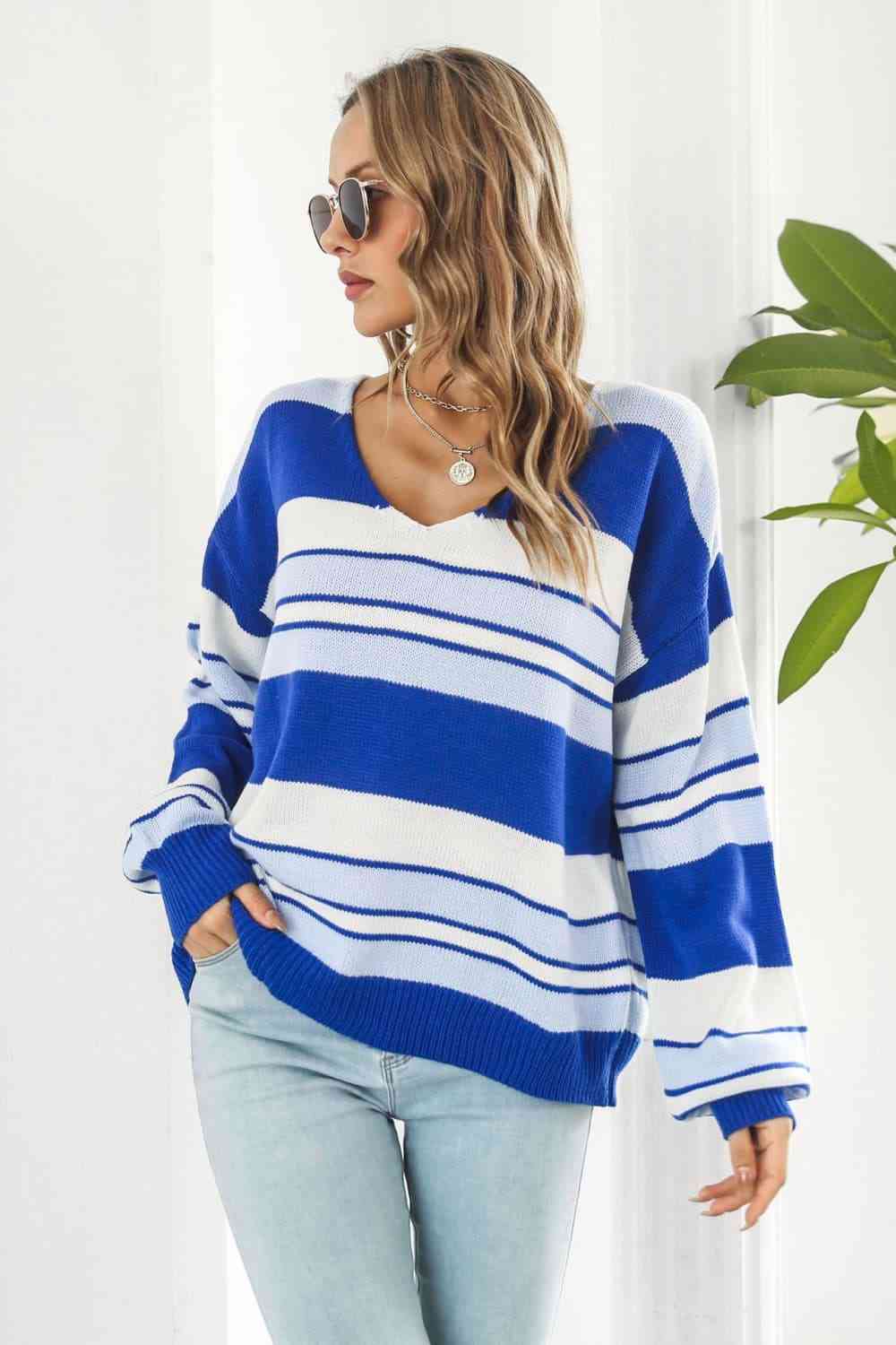 Striped V-Neck Dropped Shoulder Sweater