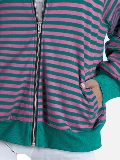 Striped Zip Up Long Sleeve Sweatshirt